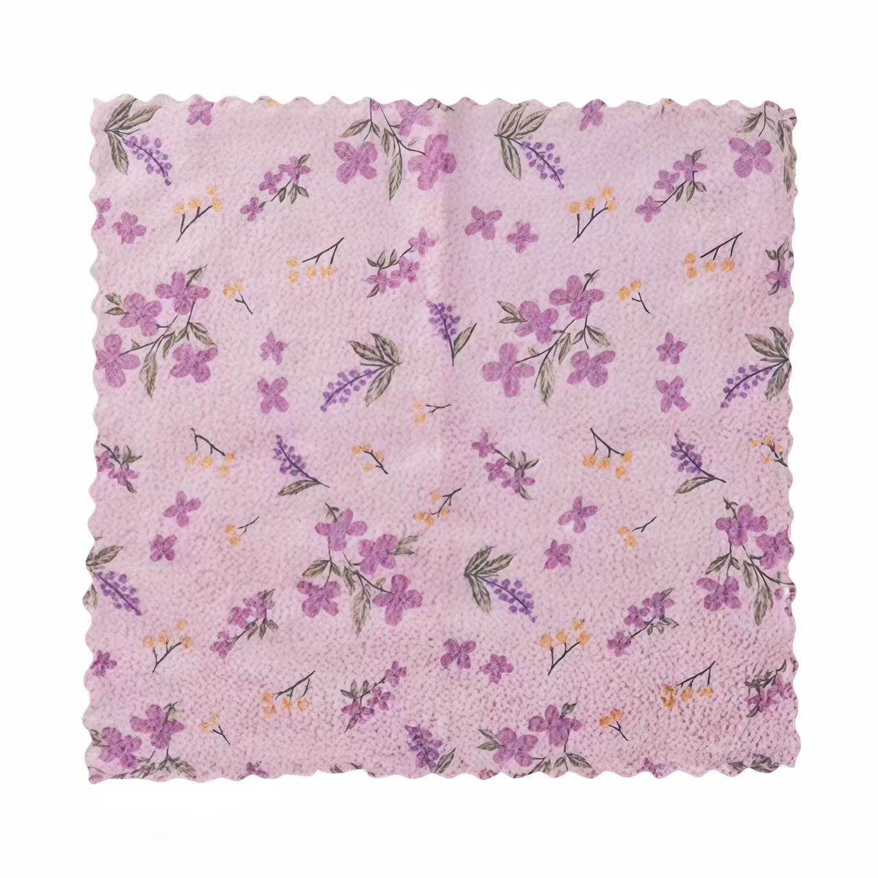 紫色碎花款珊瑚绒抹布厨房专用洗碗布擦桌布家政洗碗巾不掉毛家用
