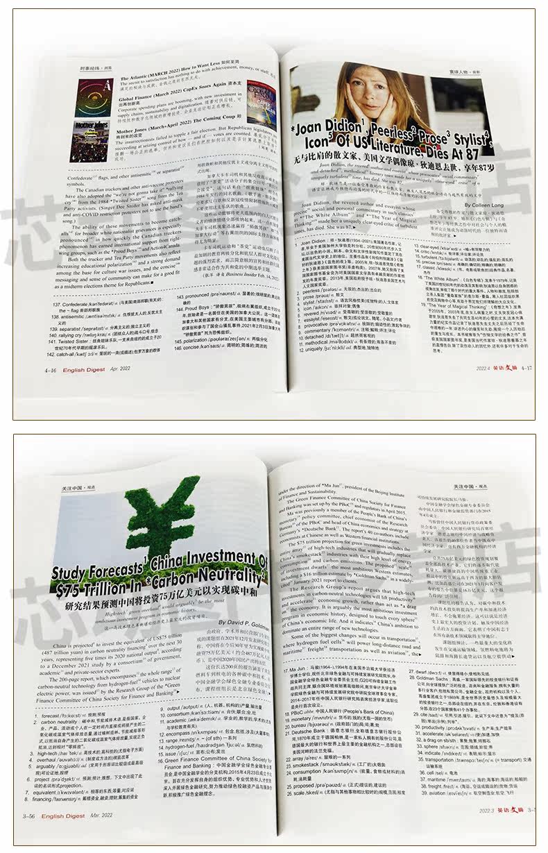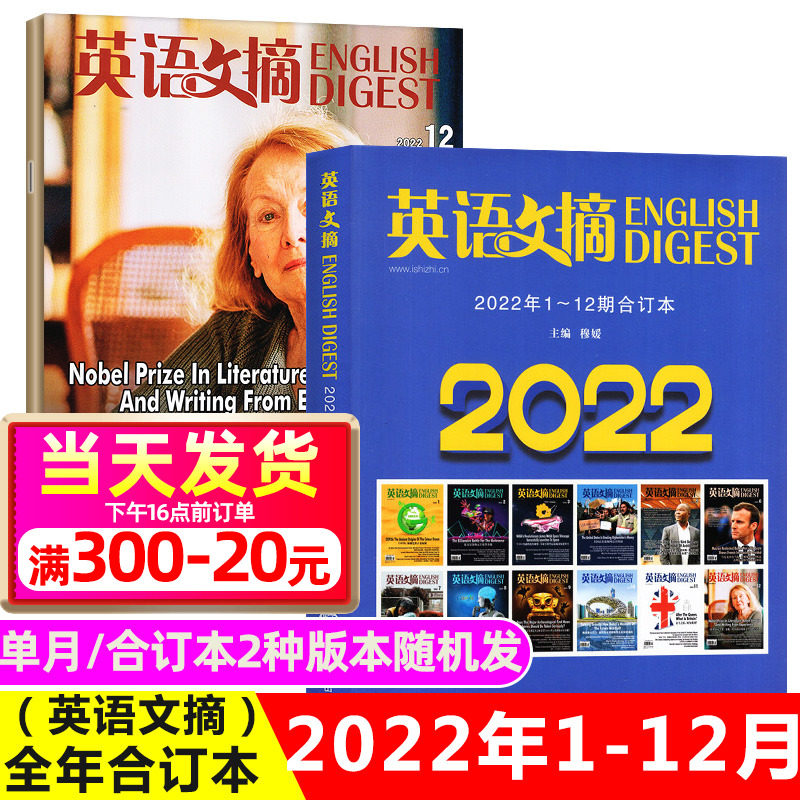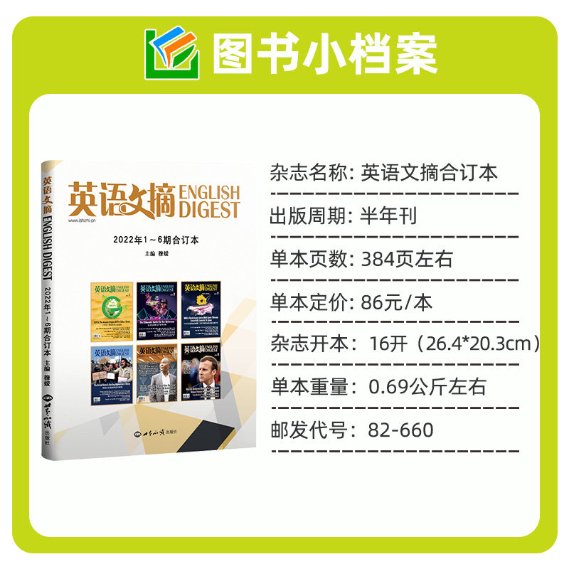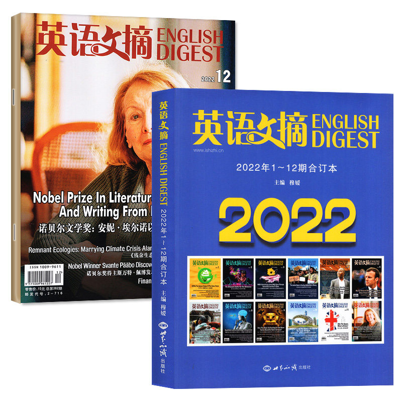 【送1份报纸】英语文摘杂志合订本2022年1-6/7-12月打包中英文双语世界考研学习大学四六级辅导书籍非2023/2021过期刊