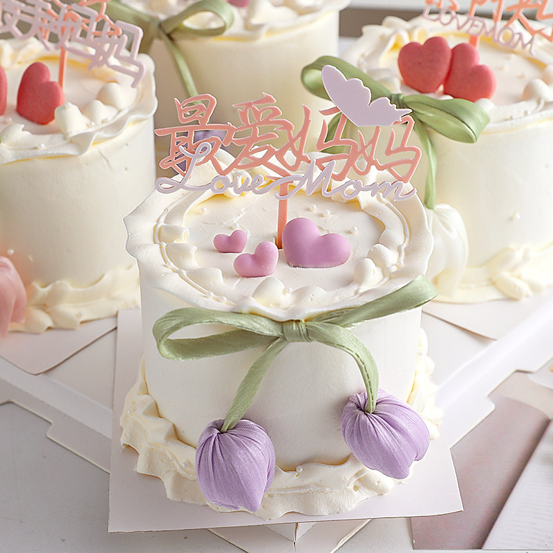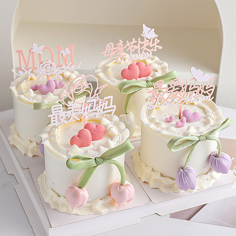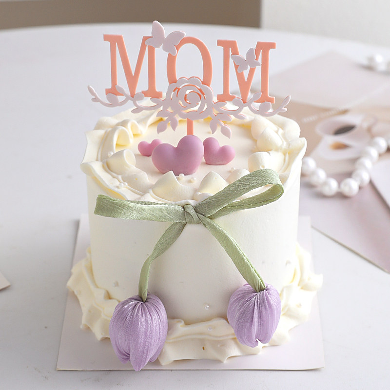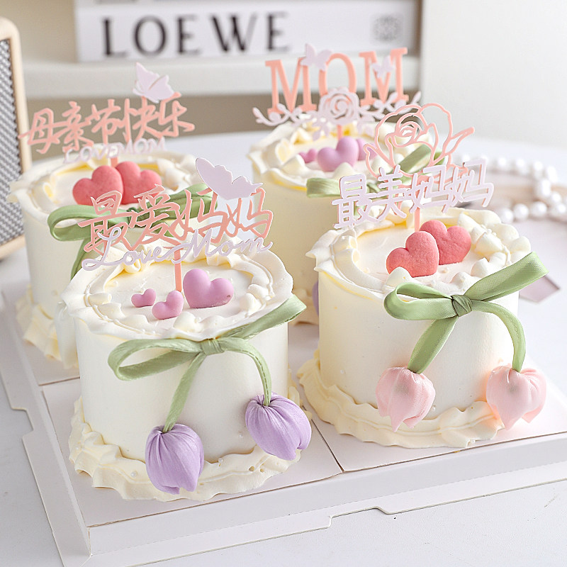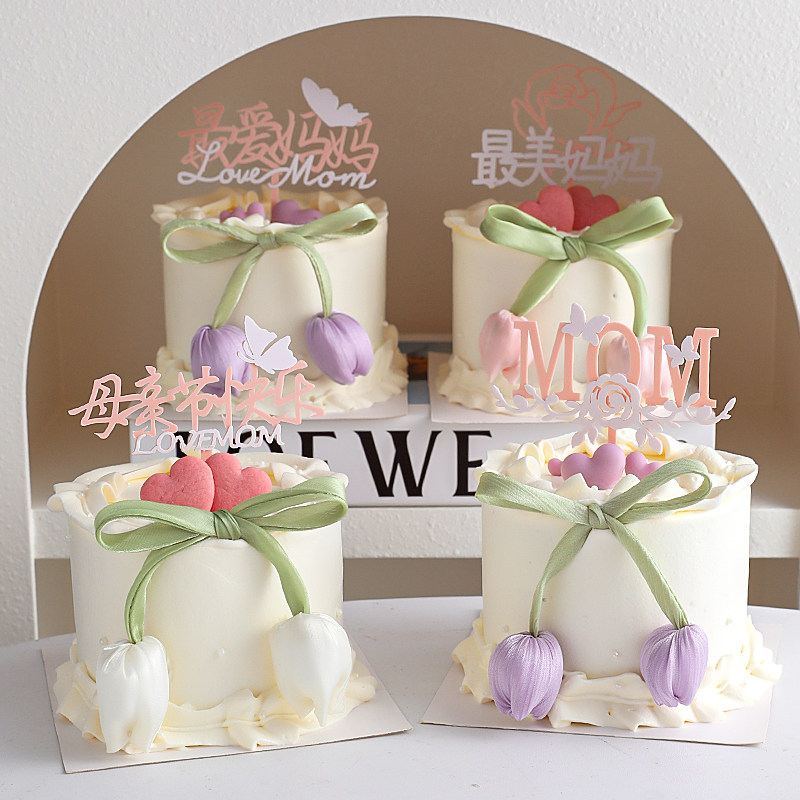 2025母亲节郁金香花苞蛋糕装饰妈妈节日快乐双层亚克力插牌插件
