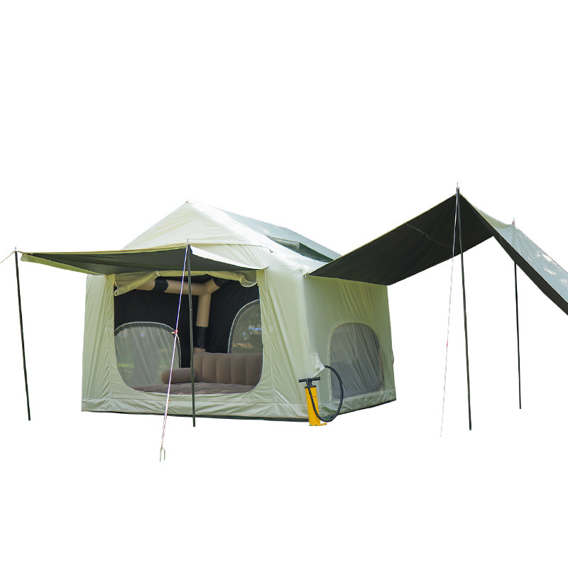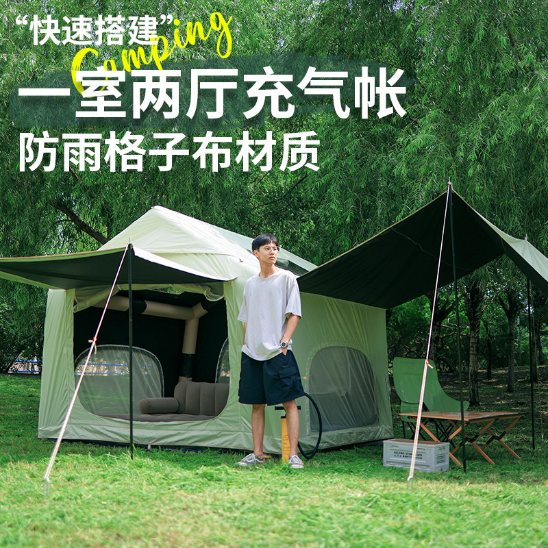 户外黑胶充气帐篷+天幕精致屋型露营房牛津布多人防雨野营装备