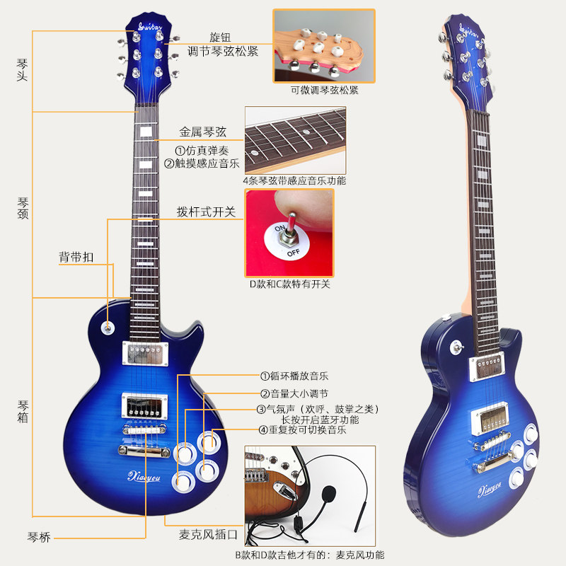 可弹奏电吉他仿真贝斯儿童初学玩具尤克里里男孩女孩摇滚表演道具
