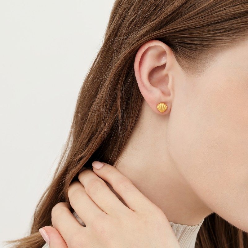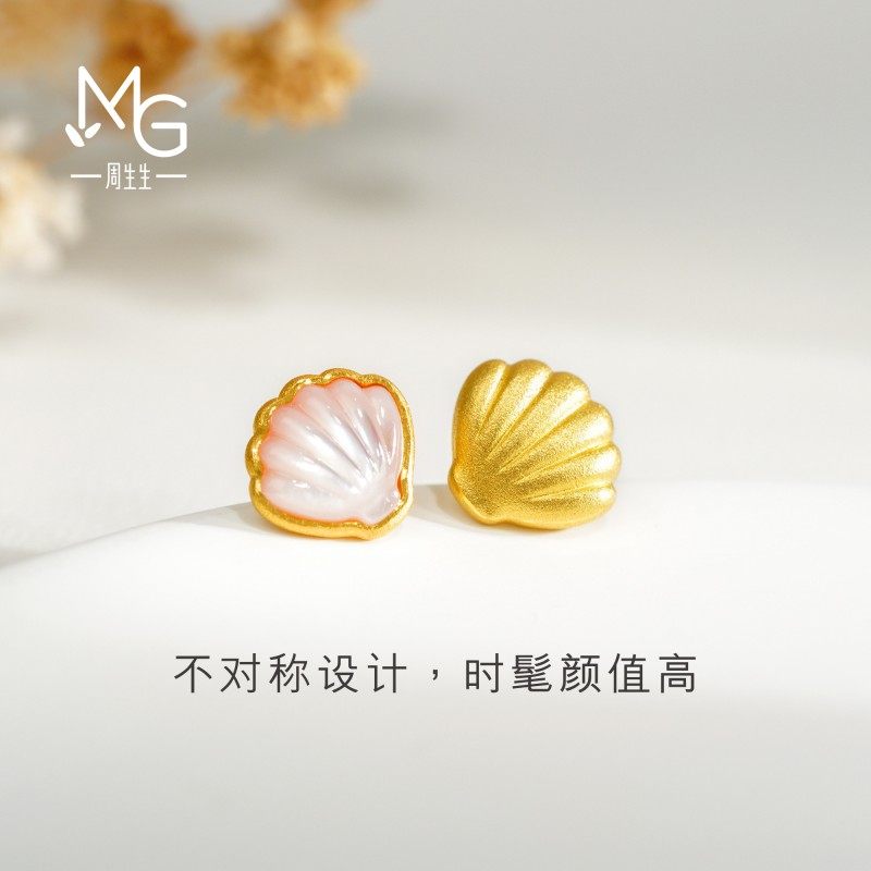 周生生爱情密语足金贝母黄金耳钉女耳饰可爱公主风93526E定价
