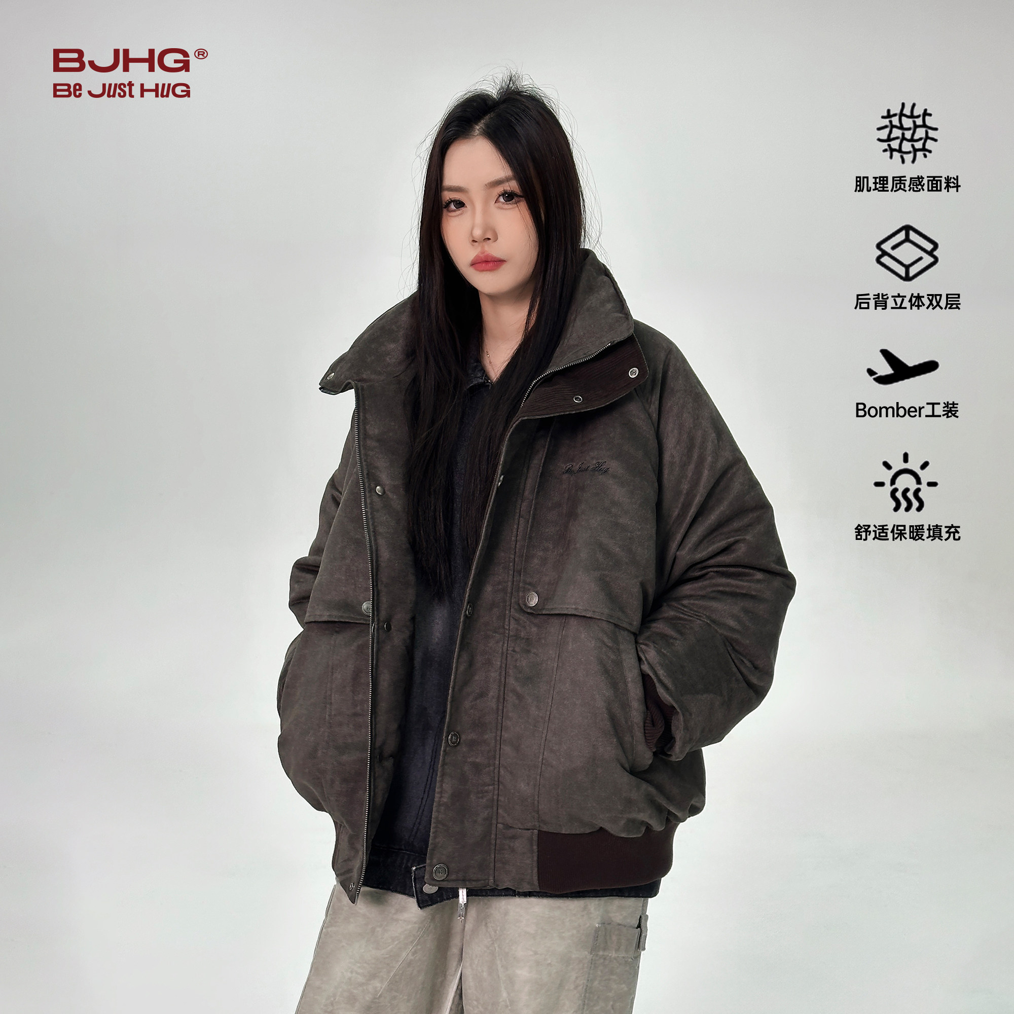 BJHG不计后果工装棉服外套冬装男款复古机车做旧Bomber防寒棉衣女