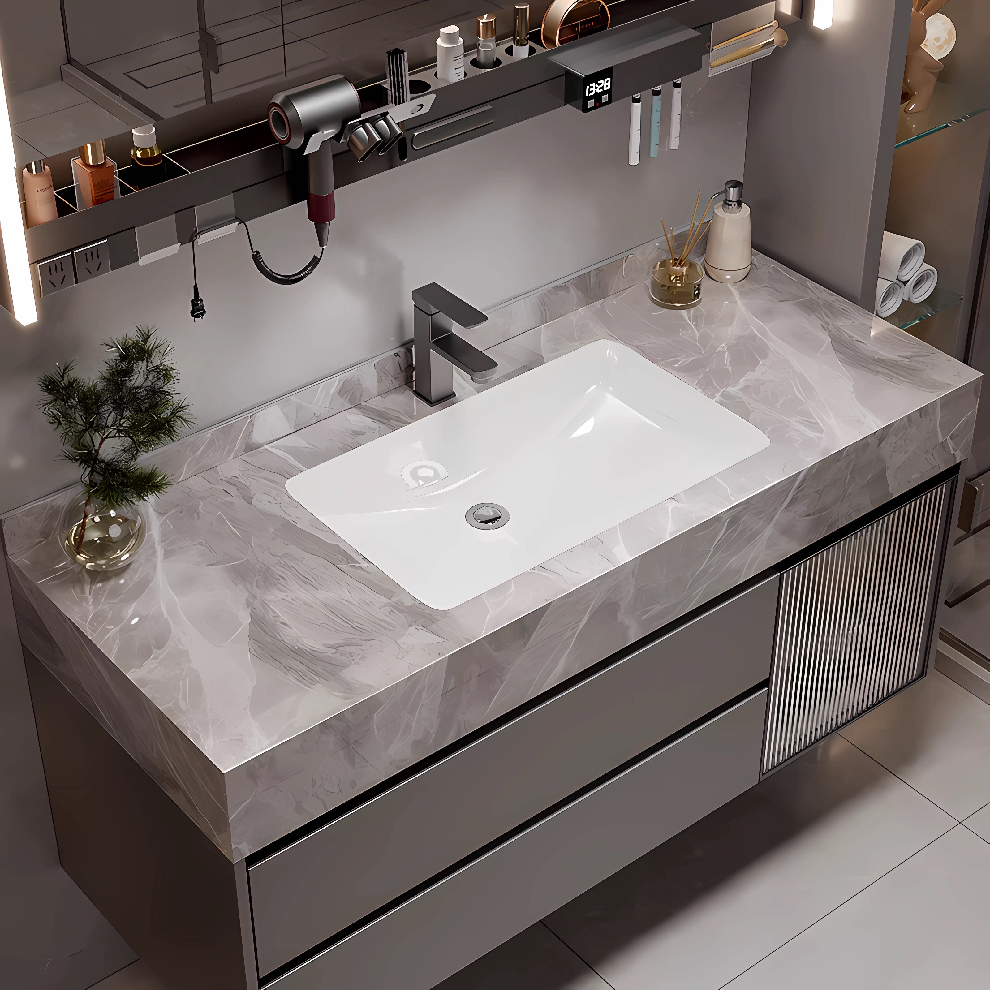 浴室柜组合洗漱台面智能卫浴卫生间岩板无缝陶瓷一体盆洗手洗脸盆