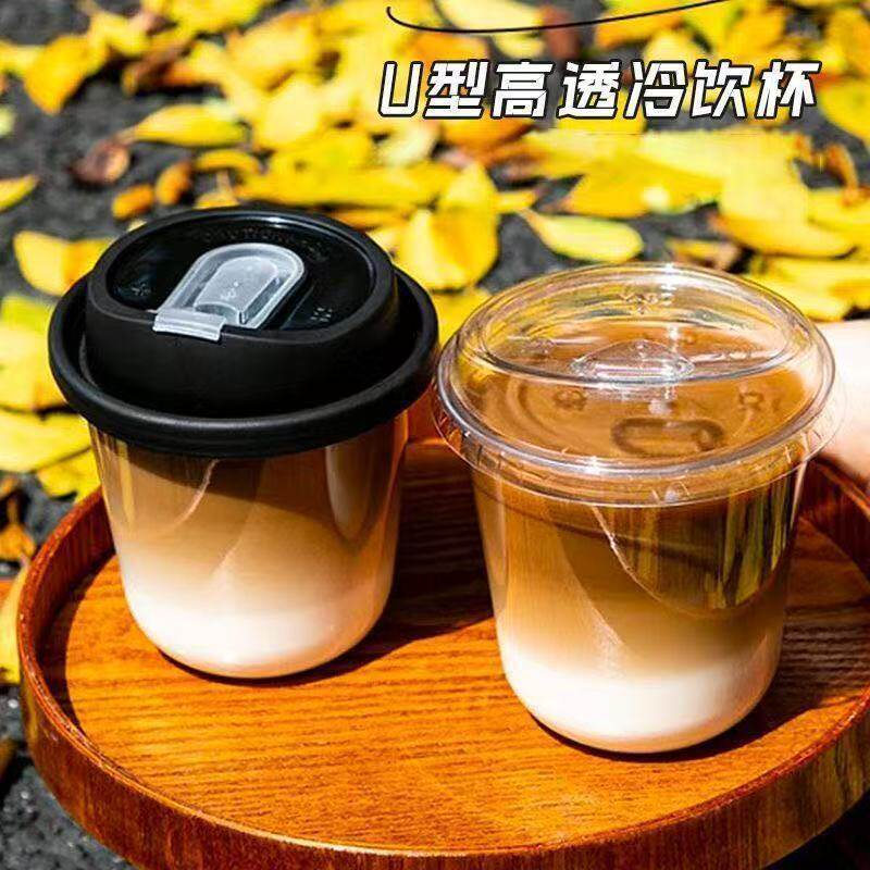 [鸡尾酒u型杯]高颜值调酒一次性杯咖啡奶茶塑料PET冷饮杯透明商用