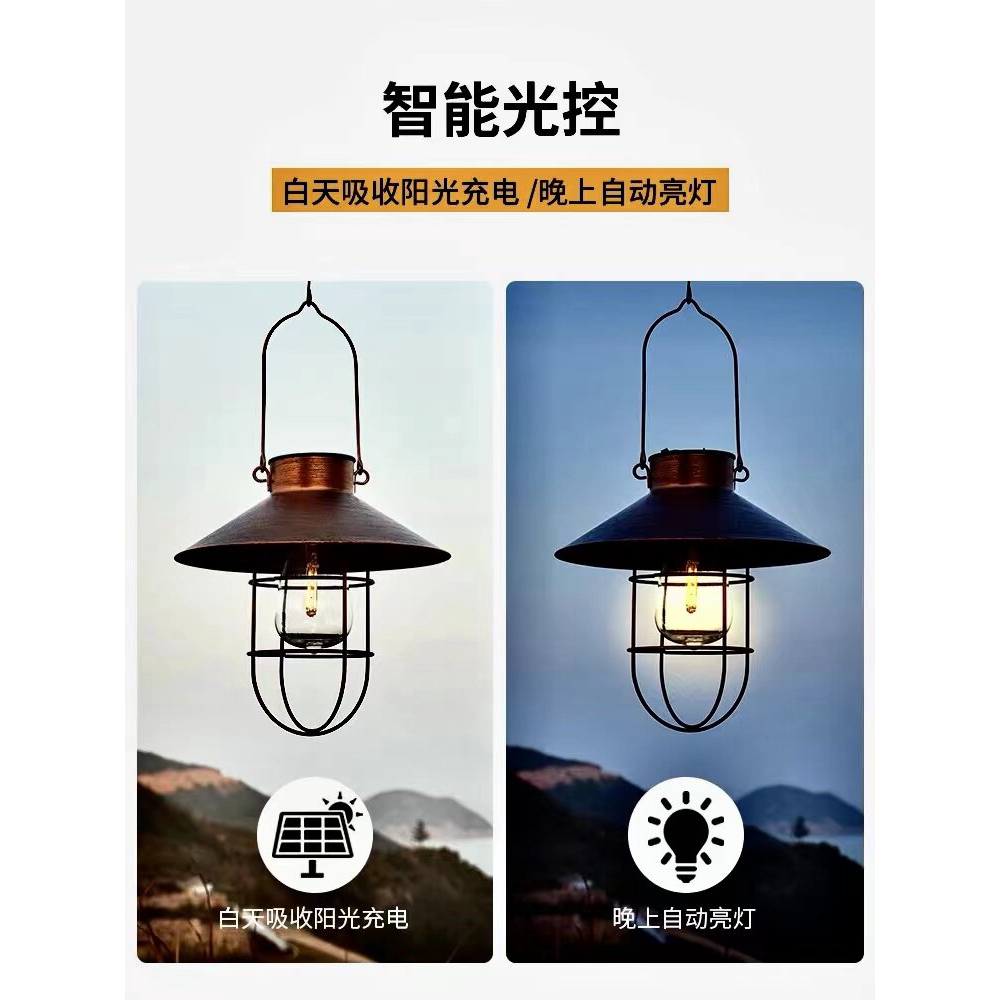 太阳能户外灯庭院灯花园装饰灯防水吊灯复古氛围灯挂灯牧羊钩夜灯