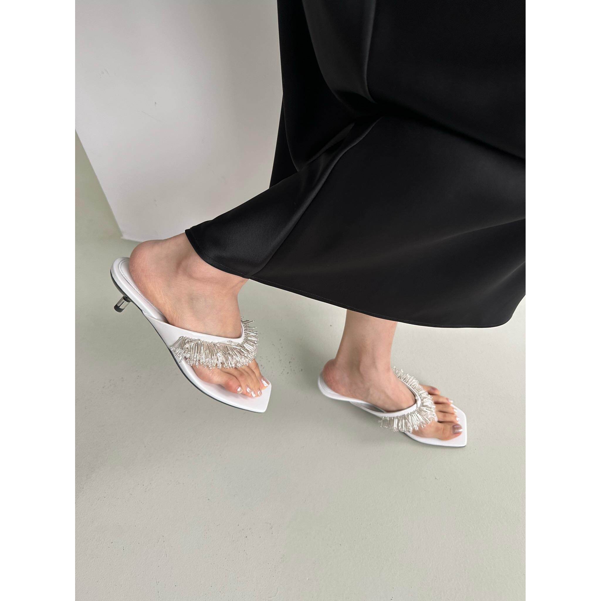 【博主同款】cotemp Valeria 透明银色钉珠平头人字拖鞋凉拖女