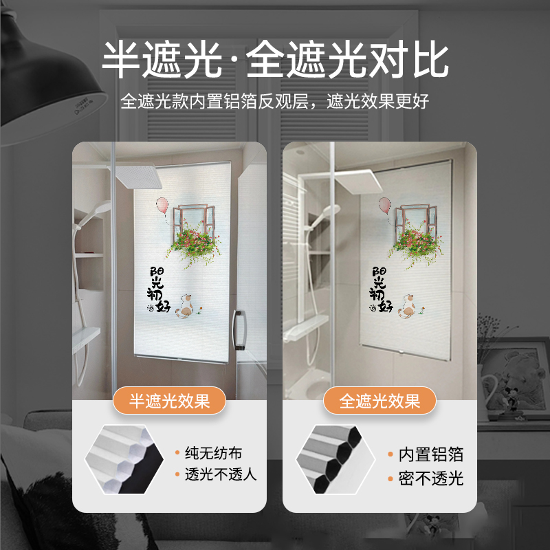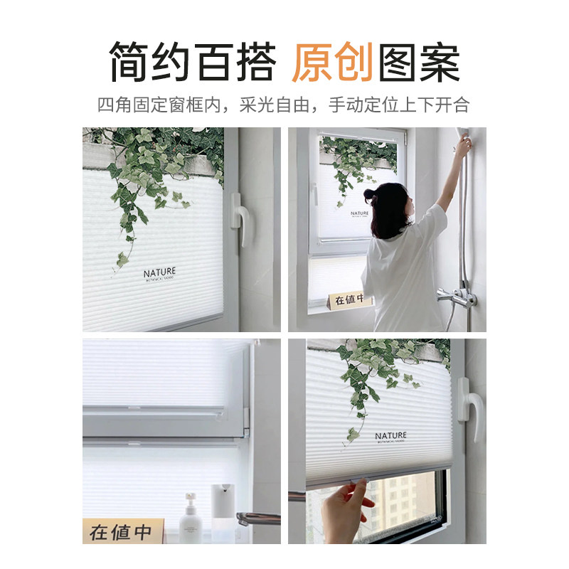 免打孔新款内开窗遮光百叶窗帘厨房卷帘卫生间内嵌内置窗户蜂巢帘