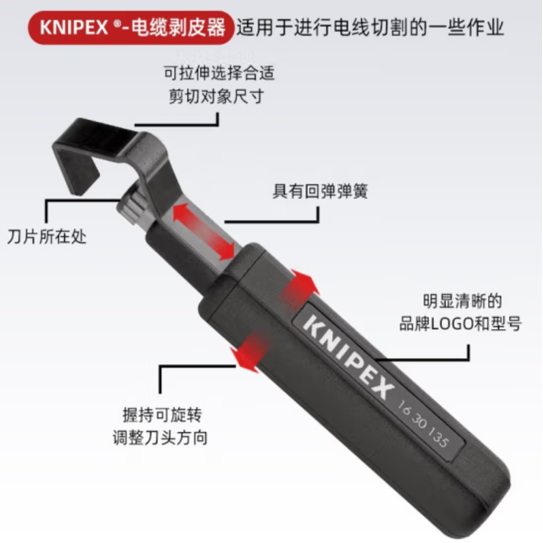 德国进口Knipex凯尼派克剥线切割工具电缆剥线刀1630135/1630145