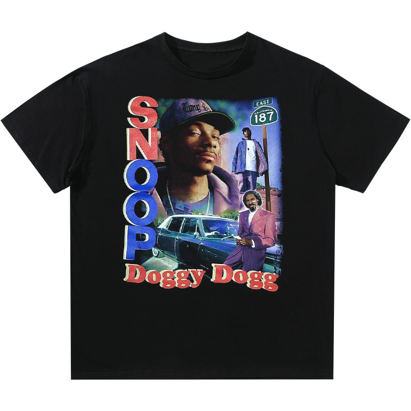 Snoop Dogg史努比狗狗说唱歌手人像印花短袖美式复古潮牌纯棉T恤