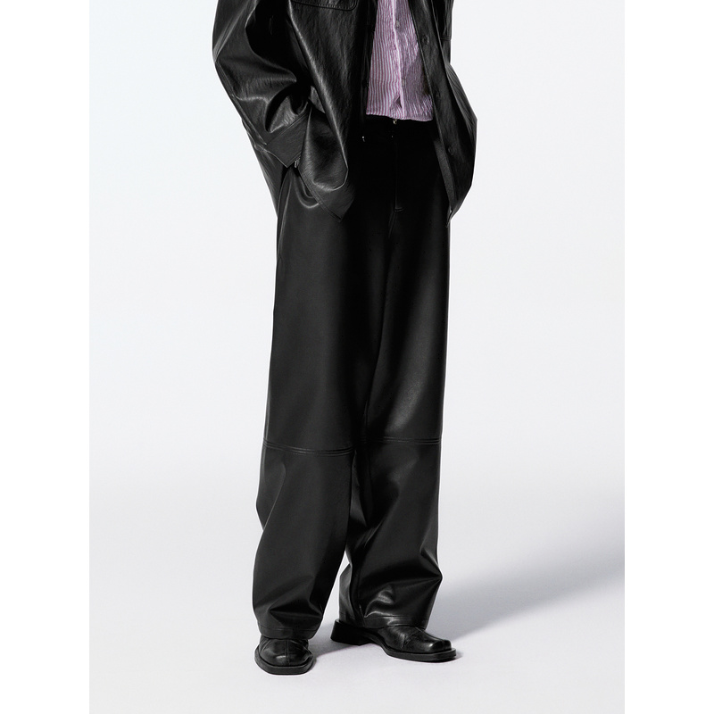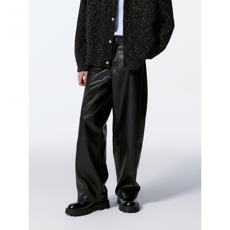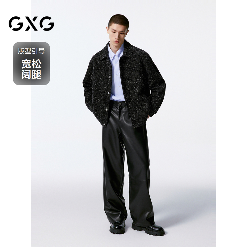 GXG男装 商场同款黑色皮裤仿皮休闲裤宽松阔腿 24年秋G24X023039