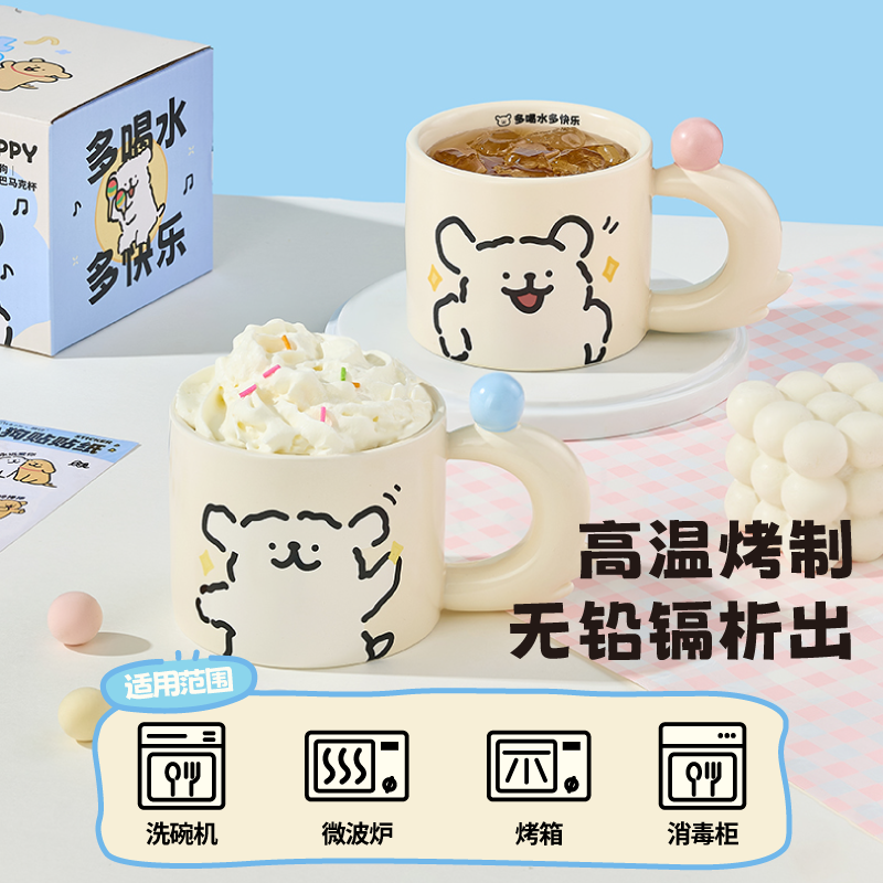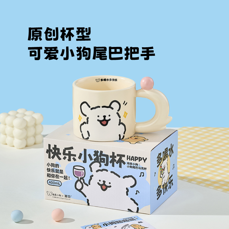 言仓线条小狗陶瓷杯实用带盖高颜值家用办公室牛奶杯咖啡杯马克杯