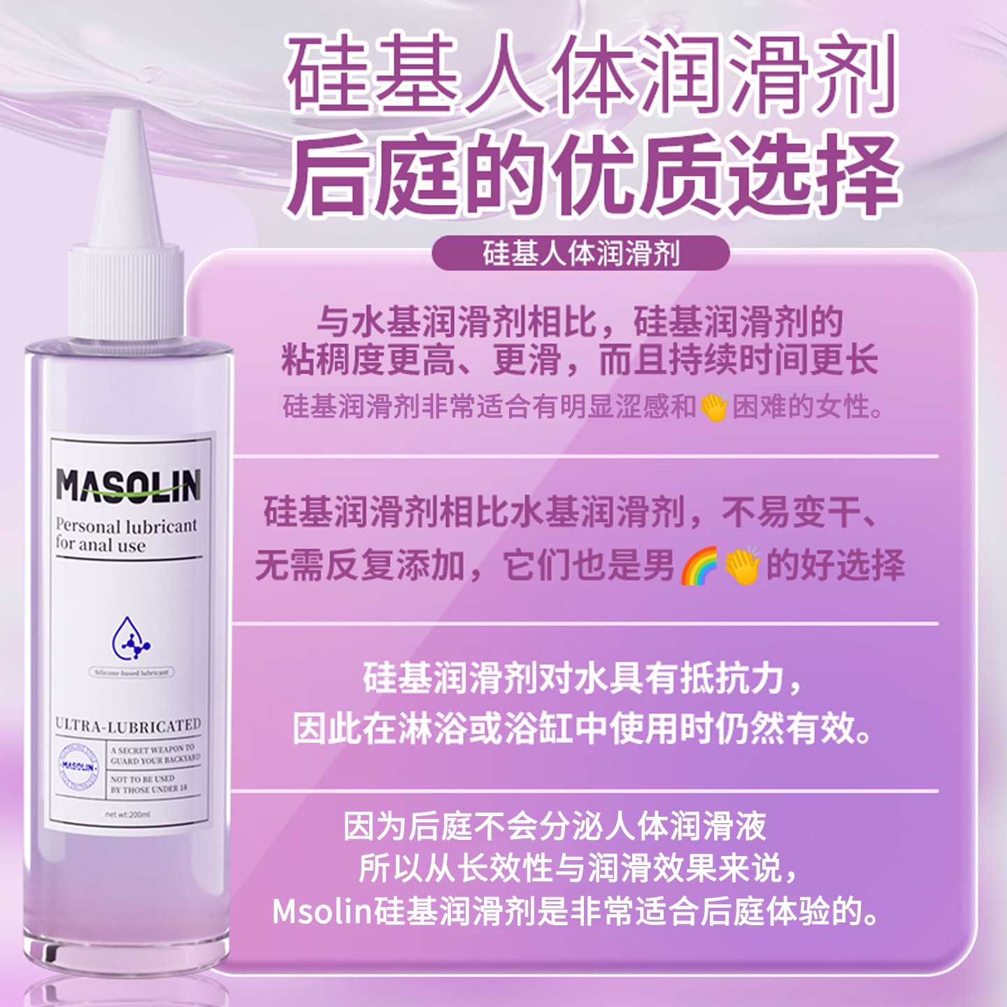 MASOLIN后人体庭夫妻用品润滑油液男用松弛剂开缓痛肛情趣成人zc