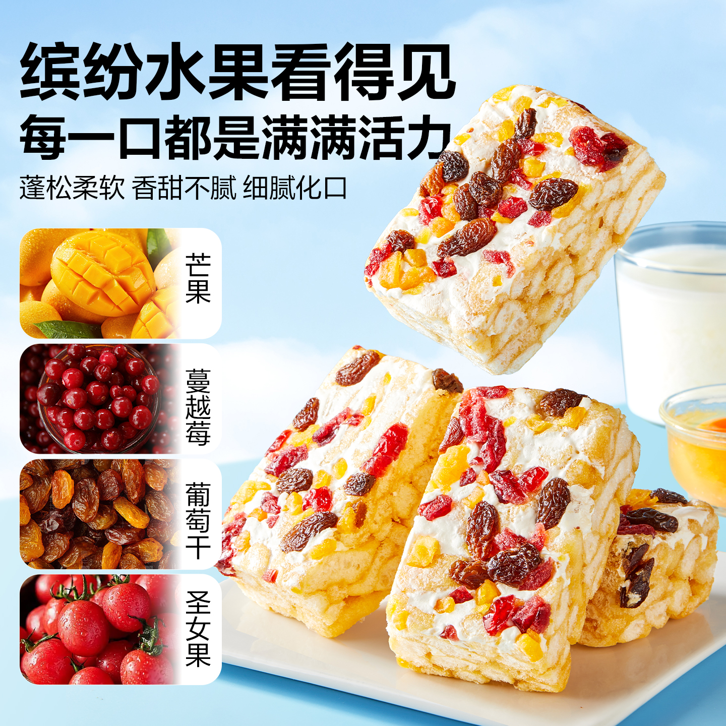 良品铺子奶盖沙琪玛芒果干坚果营养早餐萨其马小吃特产糕点心零食