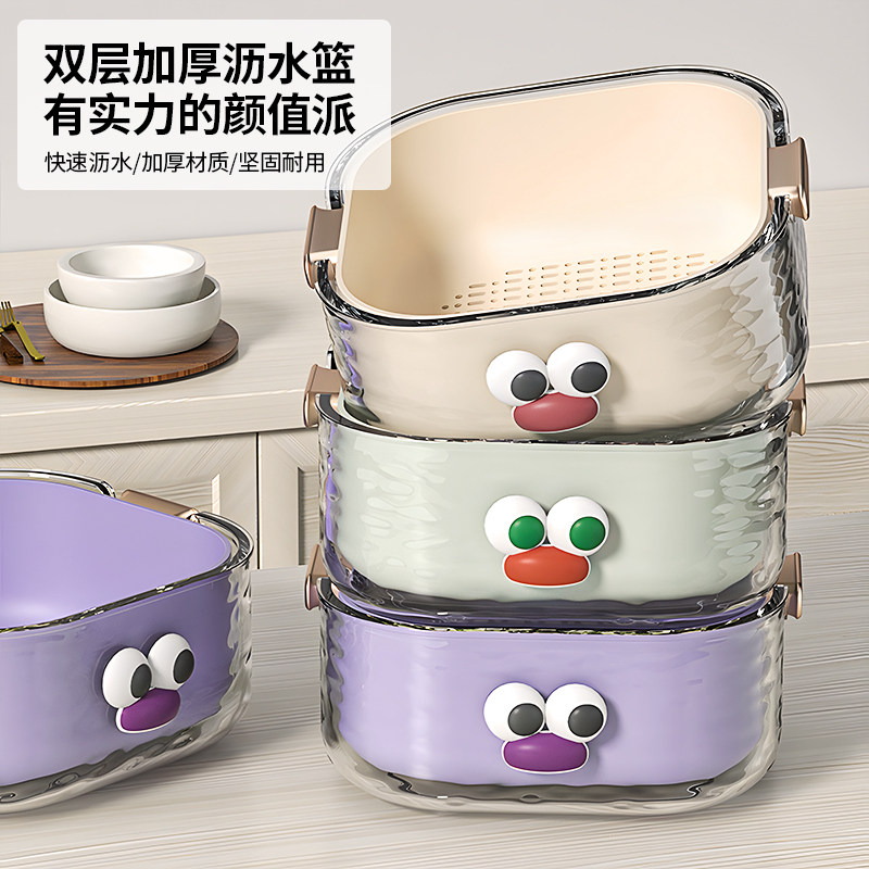多巴胺双层洗菜盆沥水篮多功能家用厨房客厅淘洗菜篮果盆果篮果盘