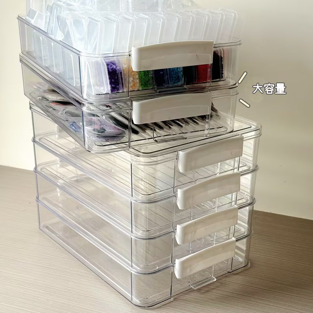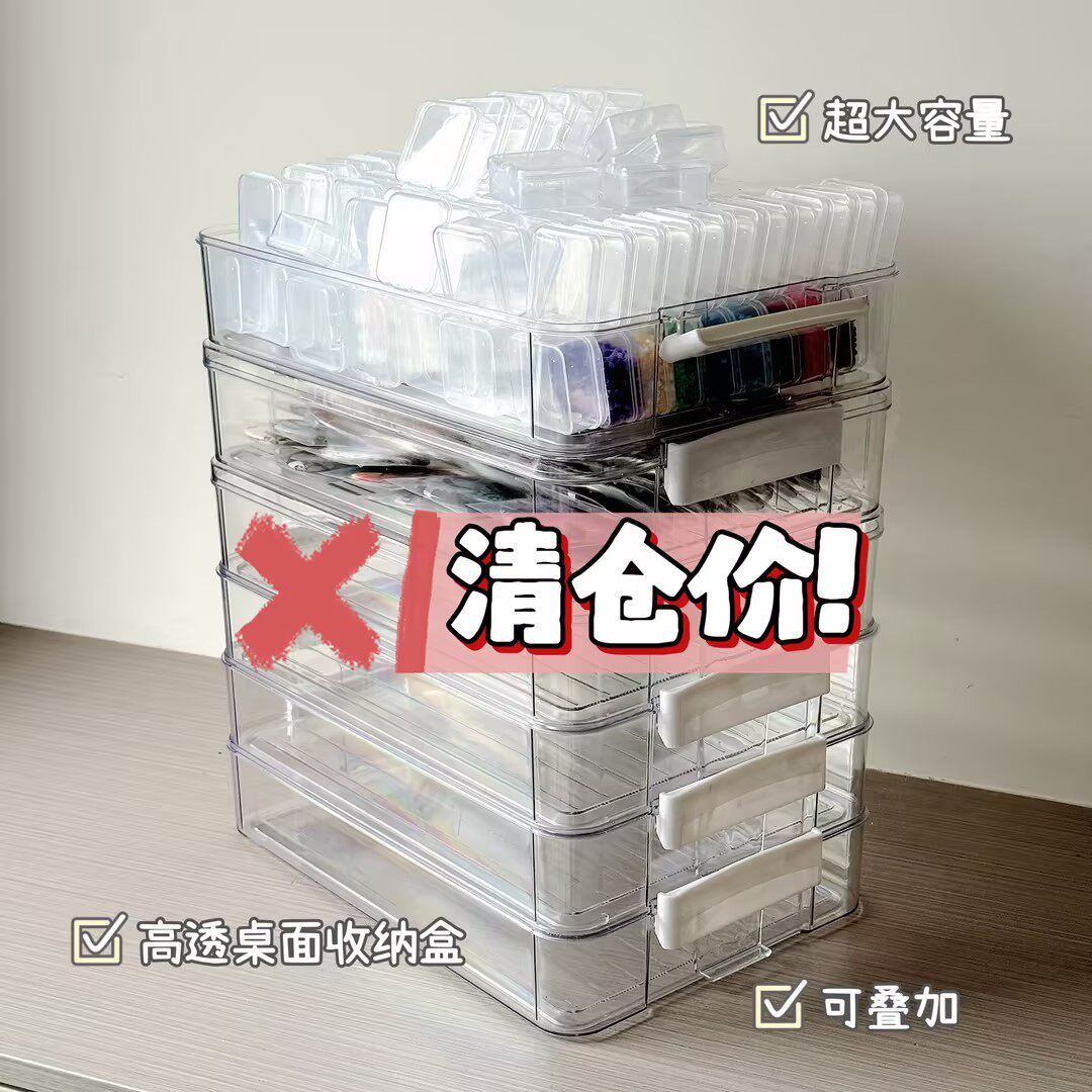 透明多层叠加收纳盒拼豆衣物整理箱桌面防尘证件文件收纳神器家用