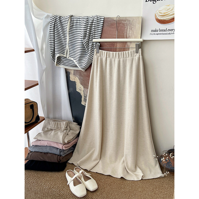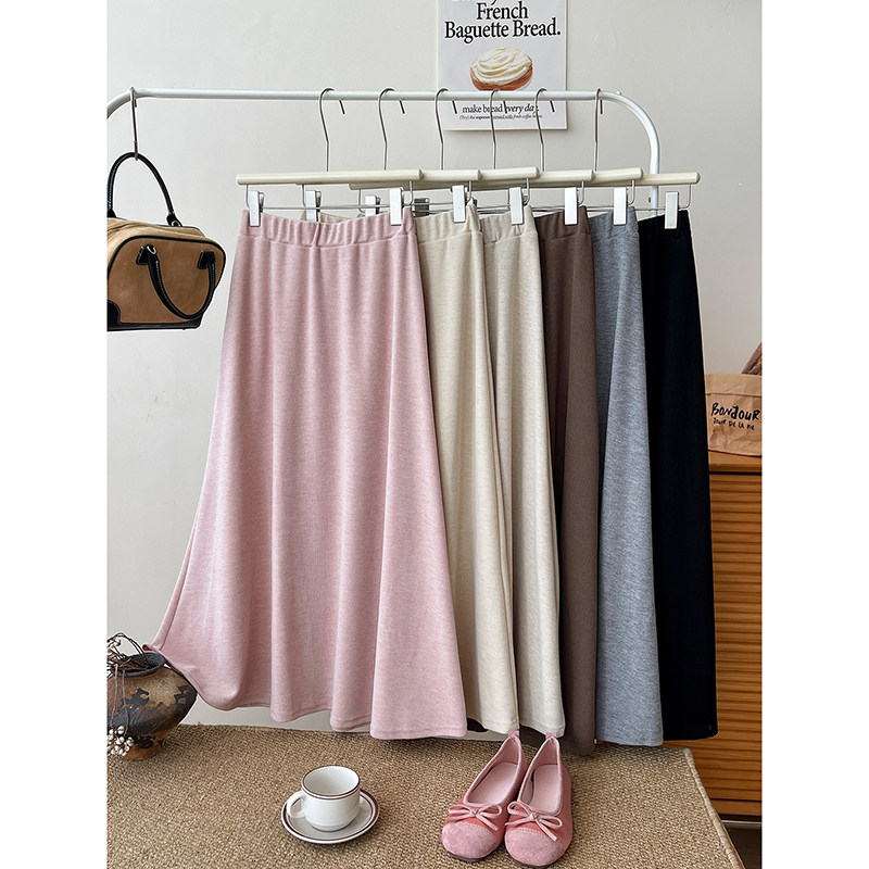 日韩系松紧腰软糯米针织羊绒半身裙女秋遮胯大摆松弛垂感a字长裙