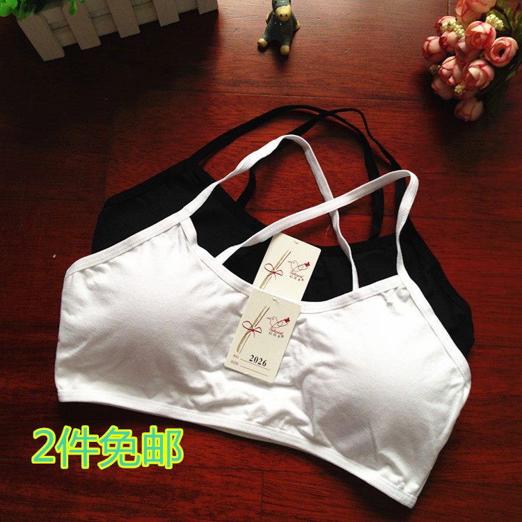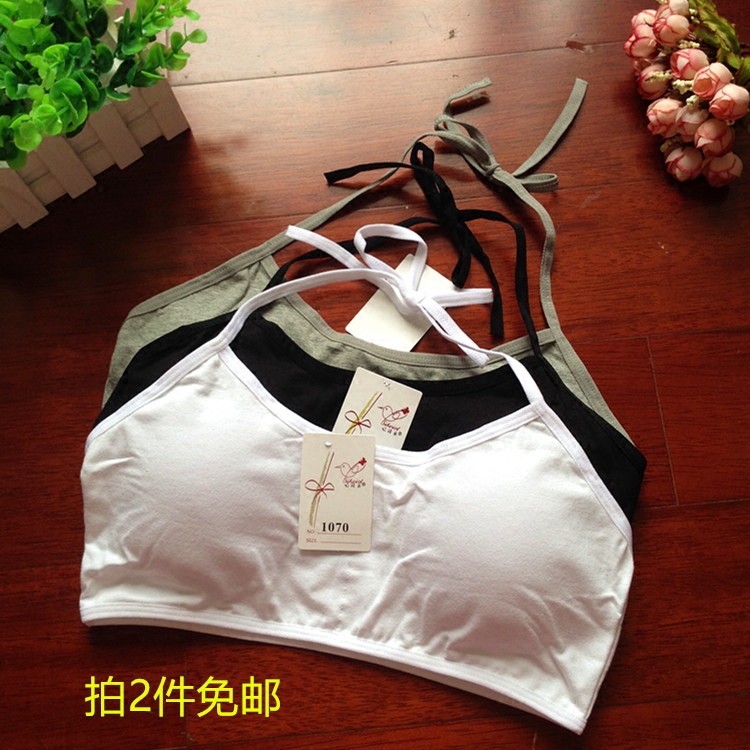纯棉少女发育期挂脖系带无钢圈文胸初高中学生内衣绑带抹裹胸背心