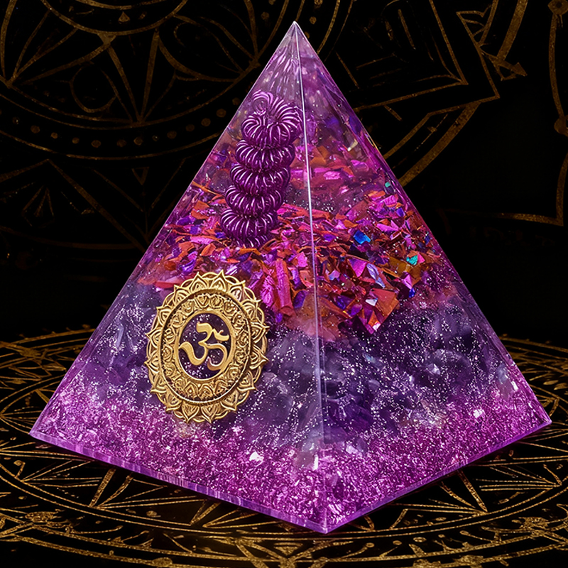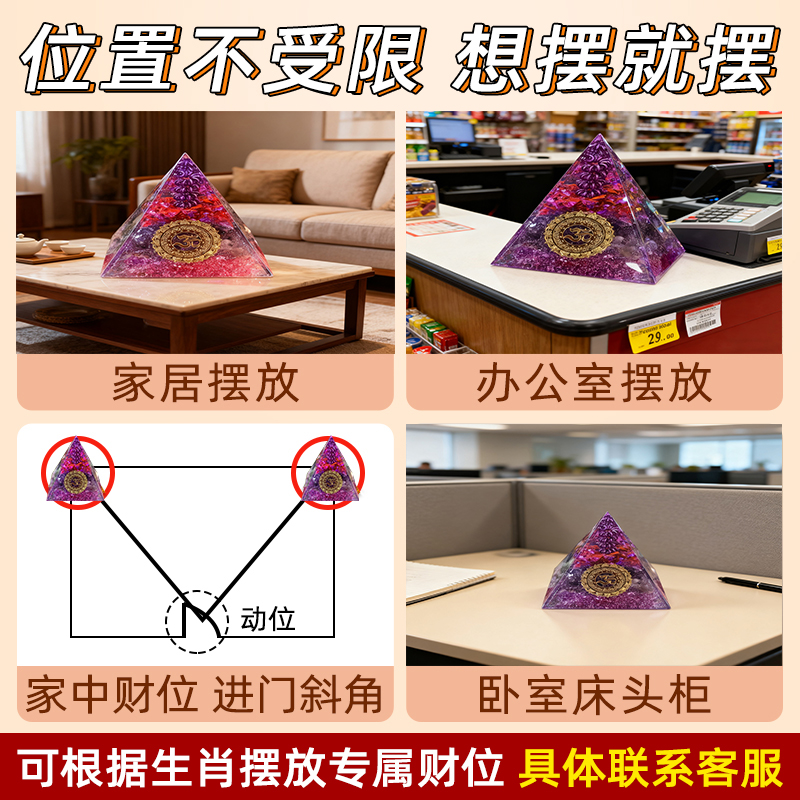 水晶金字塔摆件紫水晶碎石招财家居摆件国学装饰品九紫离火年旺石