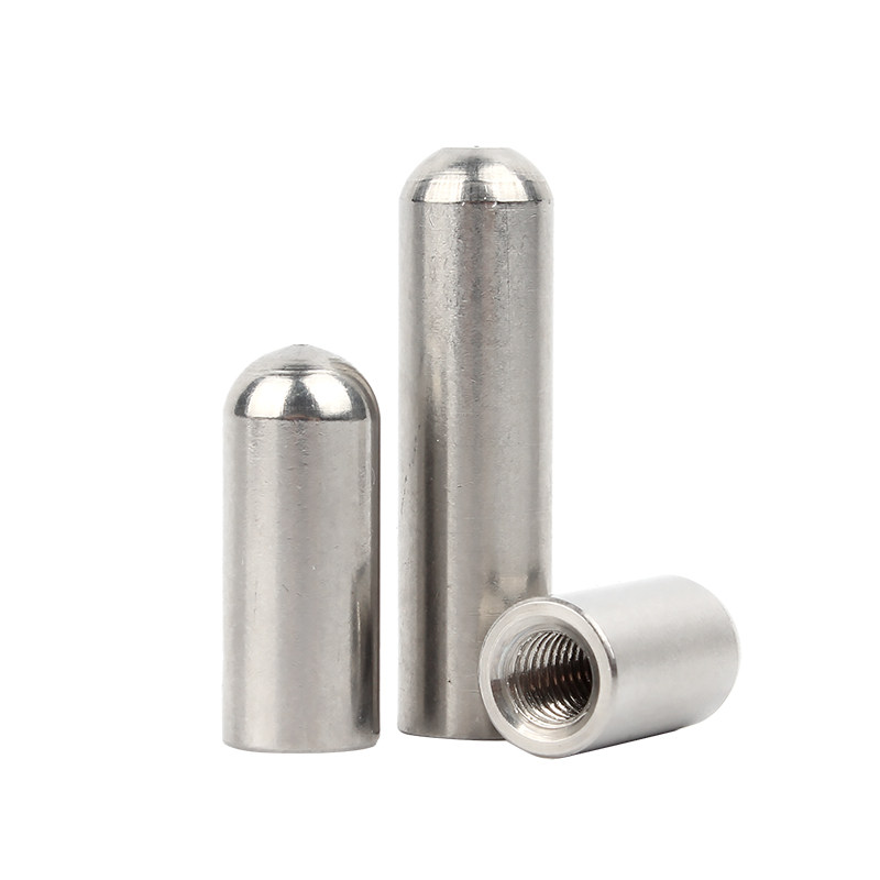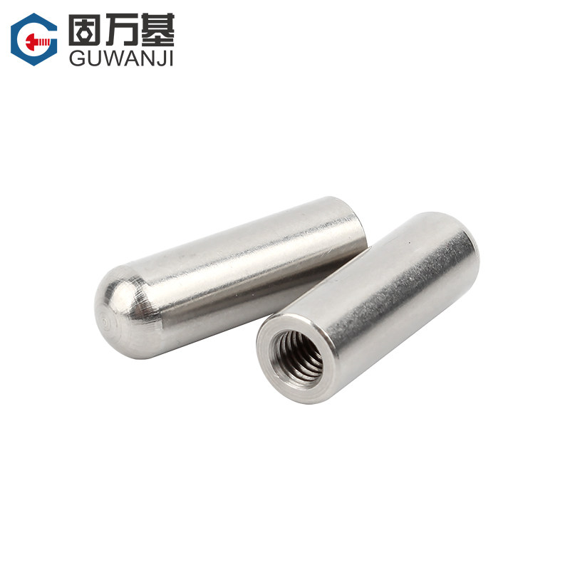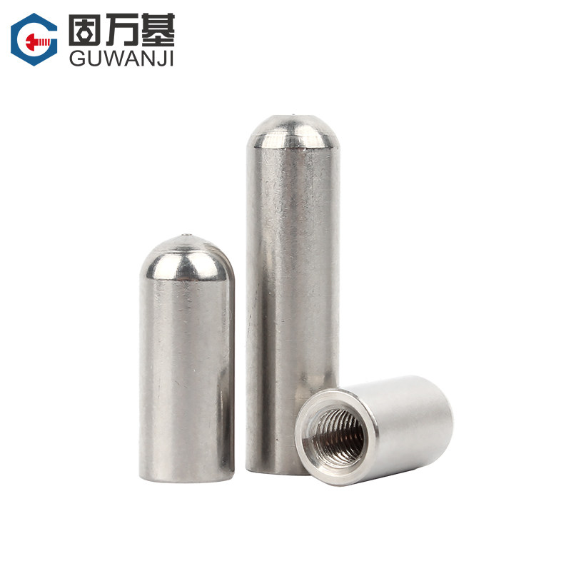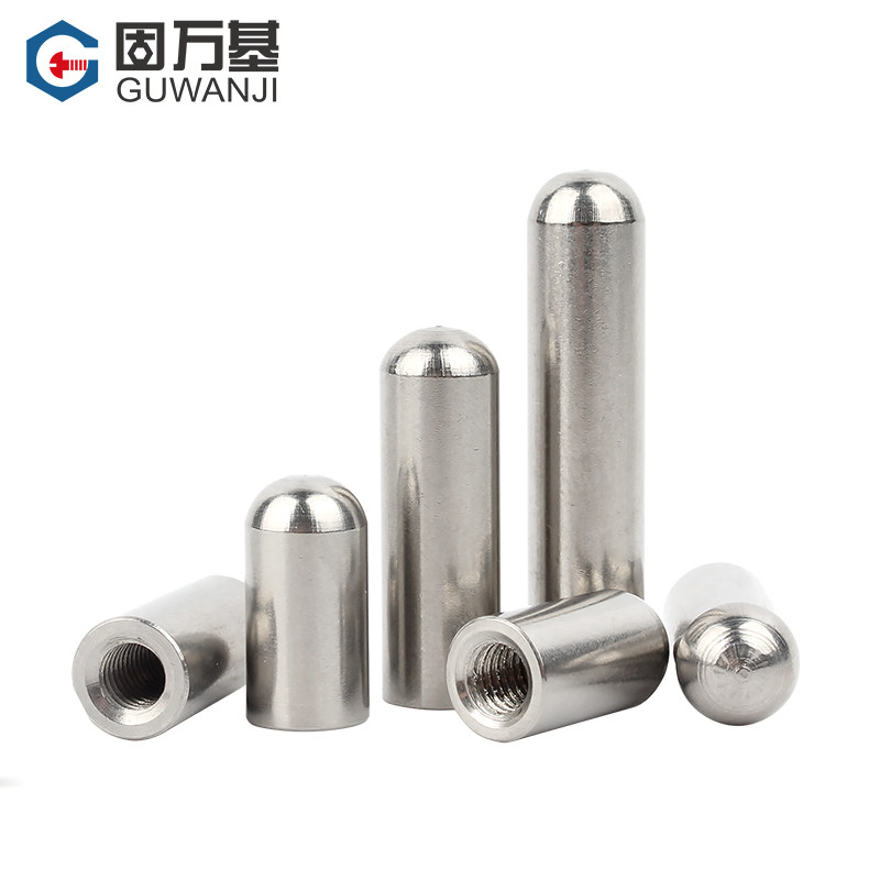 304不锈钢内螺纹圆头圆柱销牙销钉带孔销子空心销定位销M4M5M6M8