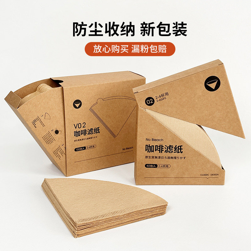 咖啡滤纸滴漏式手冲咖啡过滤纸100张原木色V60无漂白滴漏袋过滤网