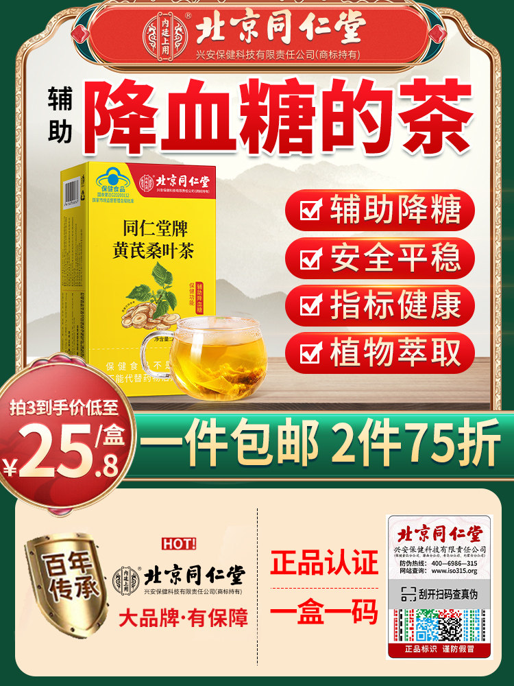 北京同仁堂黄芪桑叶茶同仁堂牌老年适用传统滋补营养品养生茶24g