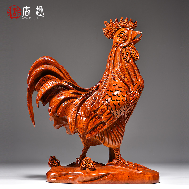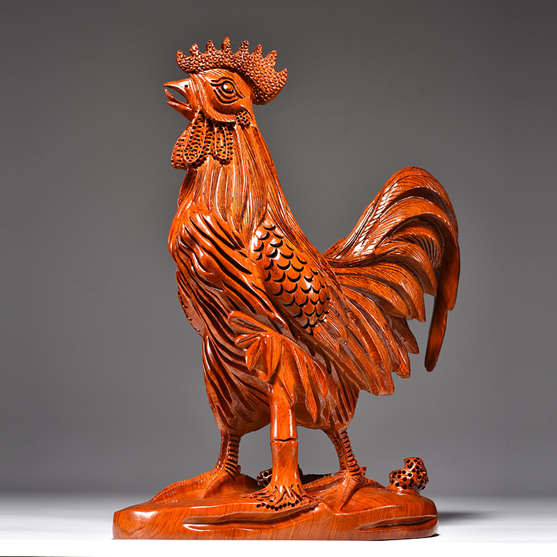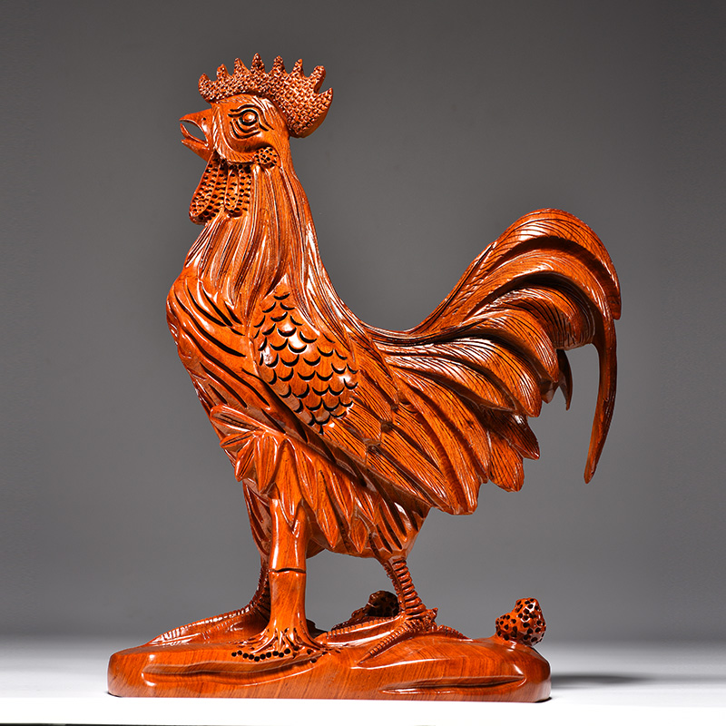 花梨木雕刻大公鸡摆件实木质动物十二生肖鸡家居客厅装饰品工艺品