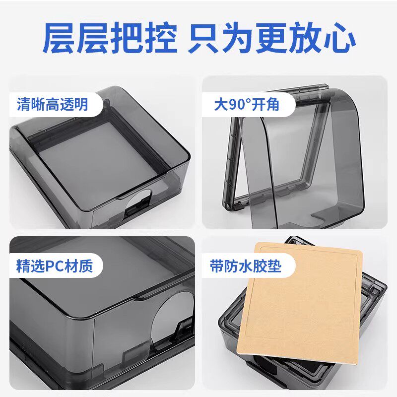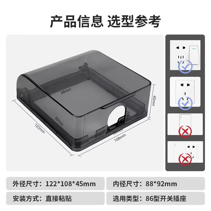 浴室卫生间插座防水罩86型粘贴式防溅盒厨房开关面板保护罩防水盒