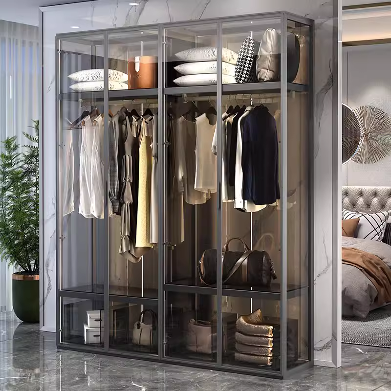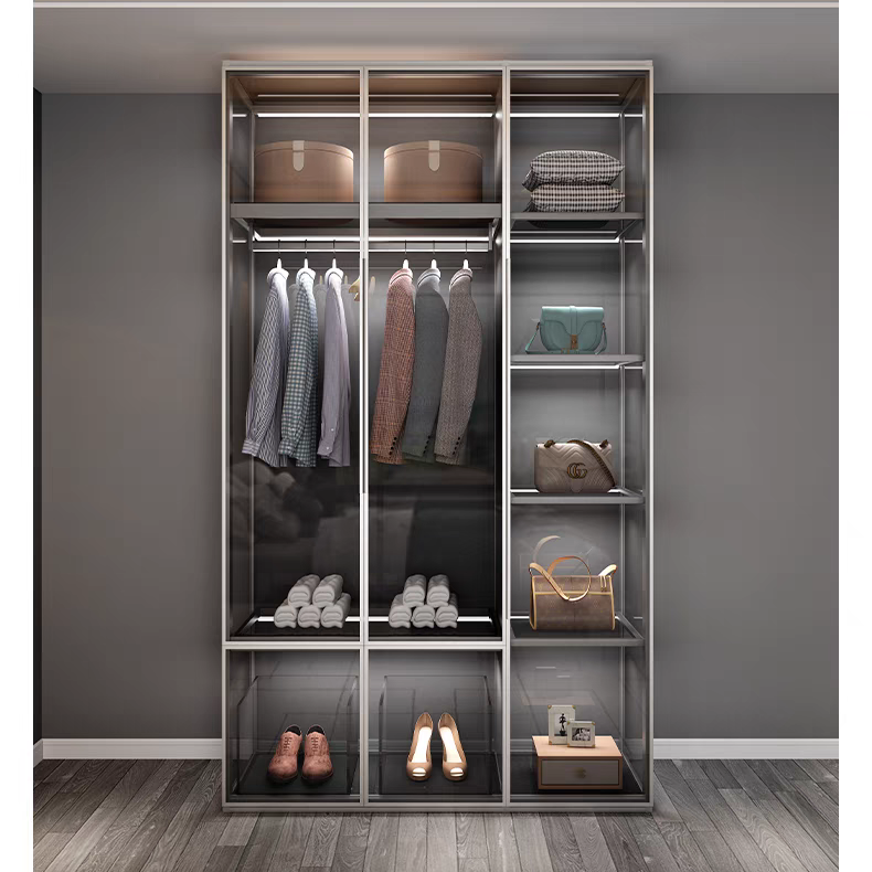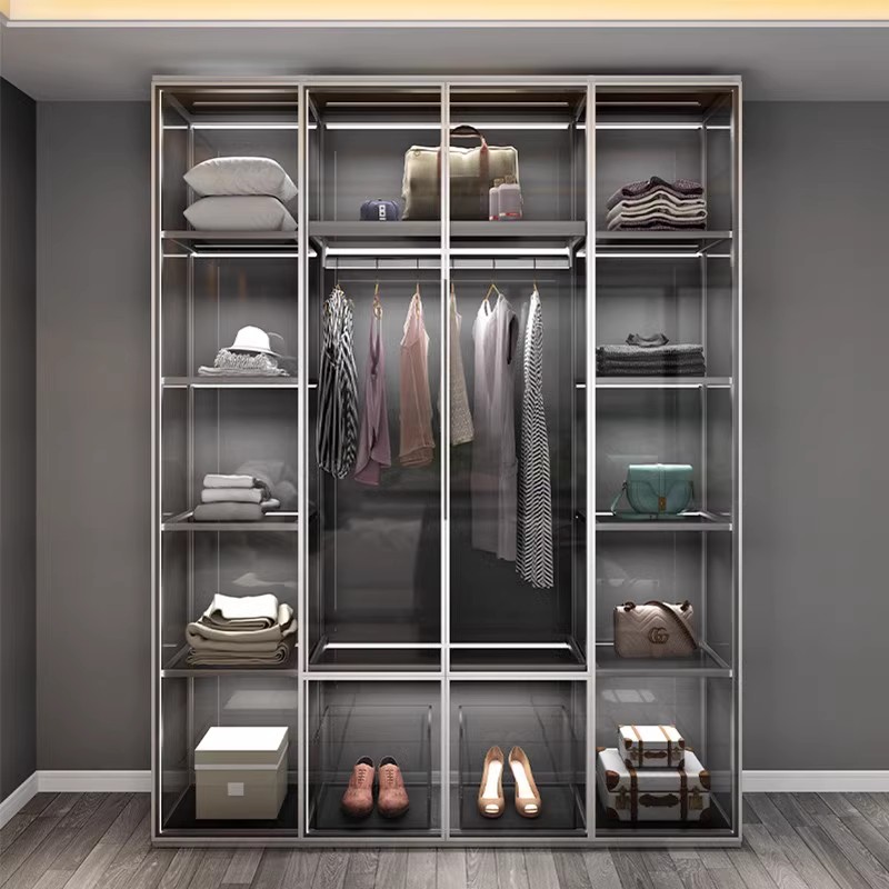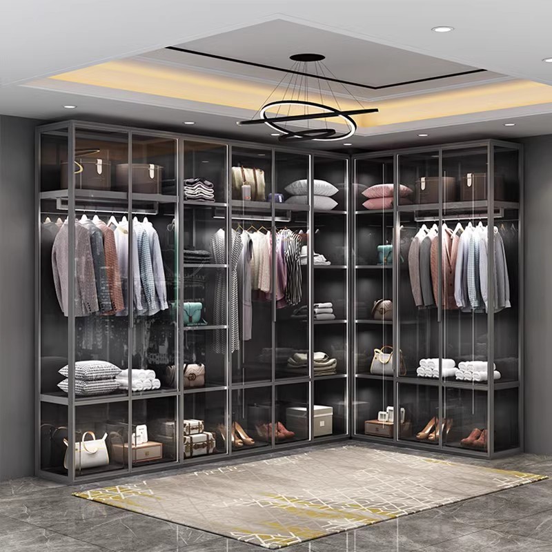全屋定制环保玻璃门铝合金属衣柜现代主卧室家用衣帽间转角大衣橱
