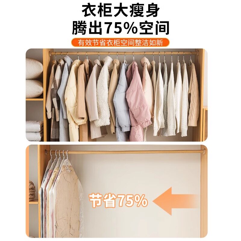 可挂式羽绒服专用透明收纳袋防尘整理衣物防尘罩大号抽真空压缩袋