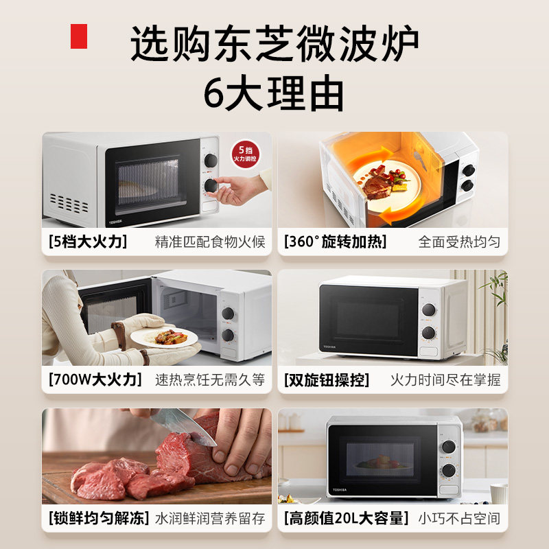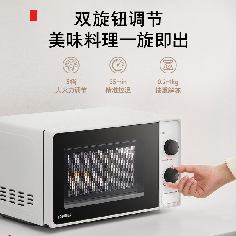 东芝家用多功能微波炉PW小型迷你加热转盘式双旋钮大容量20L官方