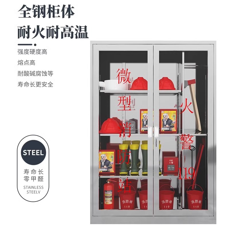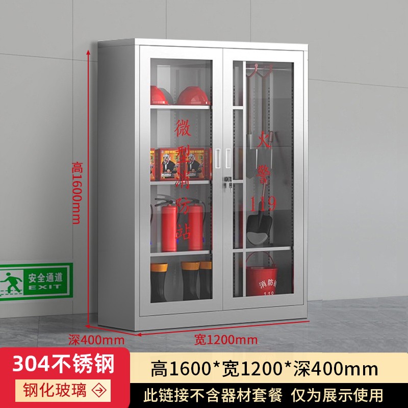304不锈钢消防柜器材柜消防站工地应急物资柜灭火器箱工具柜