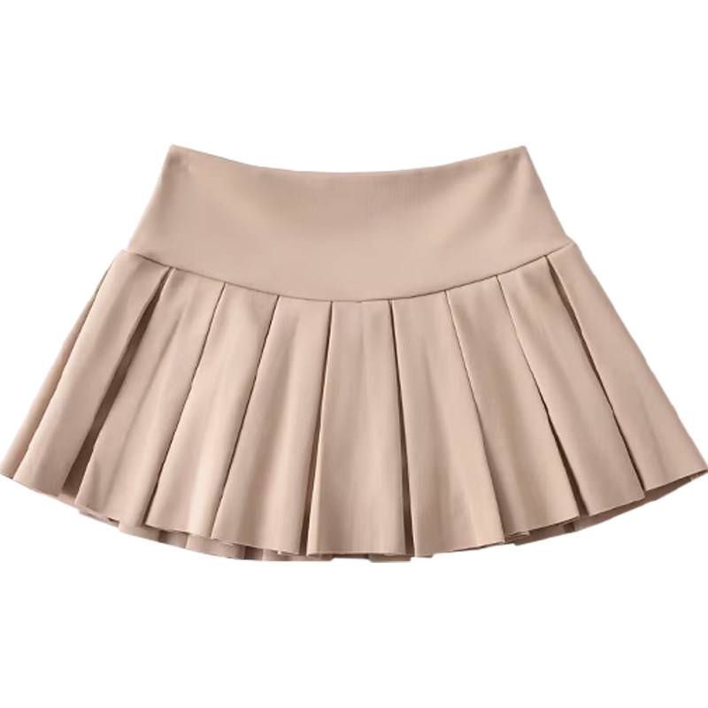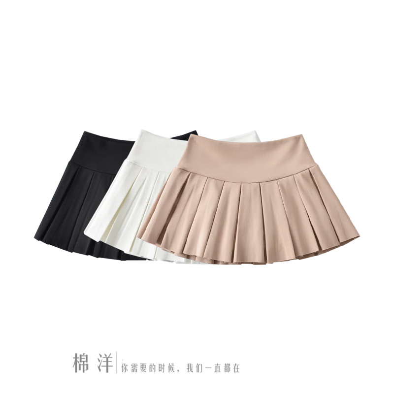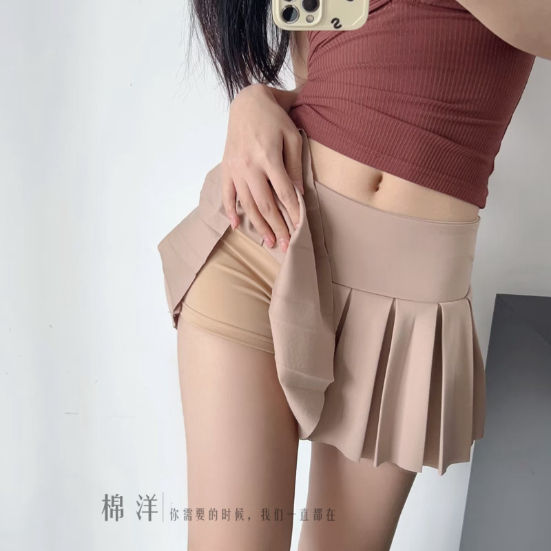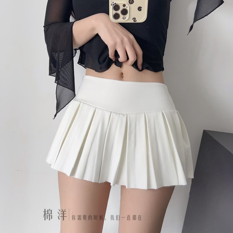 棉洋学院少女宽腰边拼接纯色百褶裙弹力高腰防走光运动甜妹网球裙