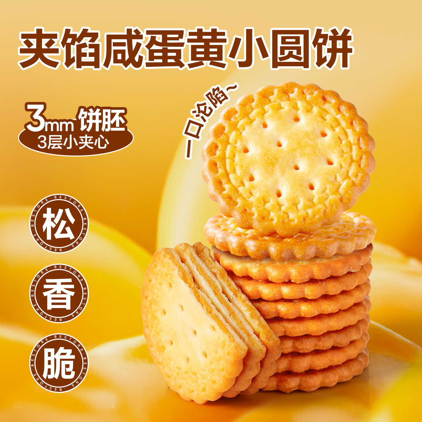 良品铺子夹心咸蛋黄小圆饼干2026新品休闲零食解馋办公室早餐小吃