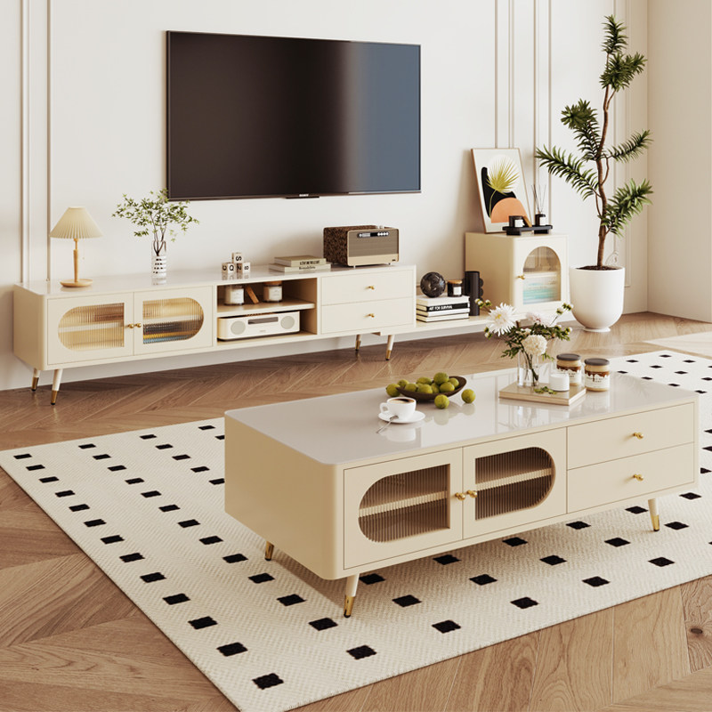 现代简约电视柜钢制储物柜玻璃门客厅家具组装小户型加厚电视机柜