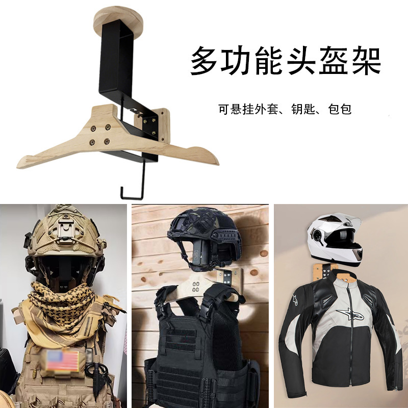 新款木质战术装备整理架警察装备实木衣架壁挂式摩托车头盔收纳架