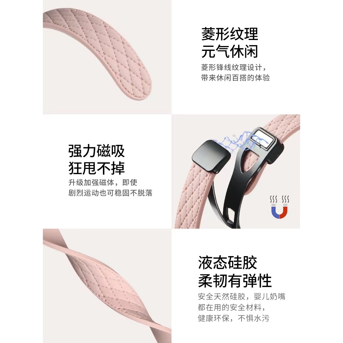 psnld适用小米手环9/8表带小米10新款皮纹硅胶磁吸小米7/6智能运动手环透气腕带4/5夏天nfc男女生八七替换带