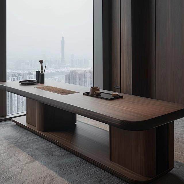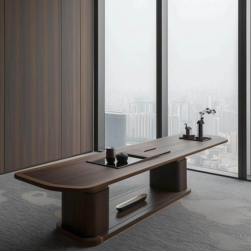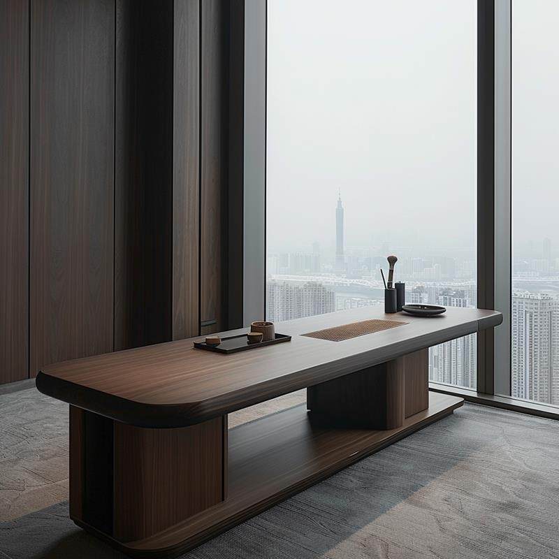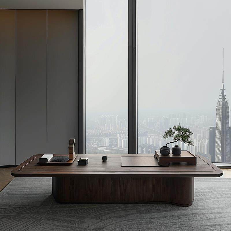 新中式禅意黑胡桃白蜡木大班台商业办公室酒店民宿主管老板桌家具