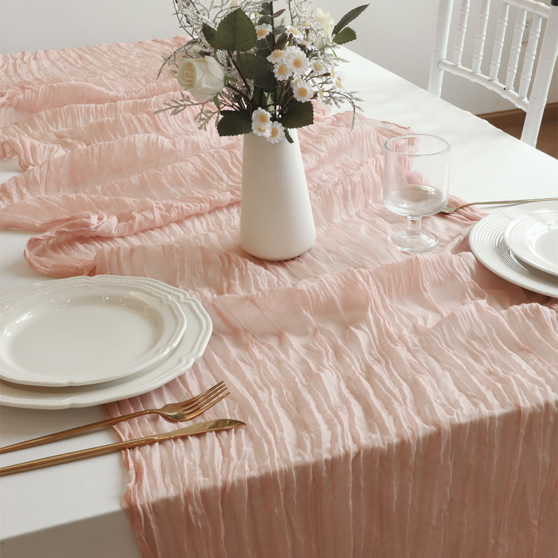 紫色纱生日布置氛围感桌面装饰纱布纱幔沙龙褶皱桌旗甜品台桌布
