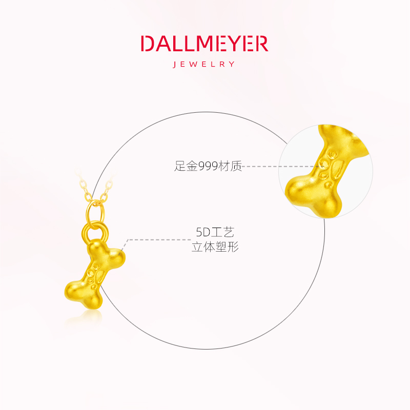 Dallmeyer小骨头吊坠黄金足金999挂坠项链5D硬金情侣送女友礼物