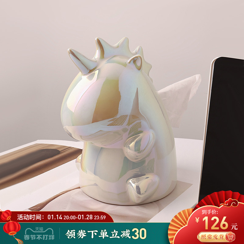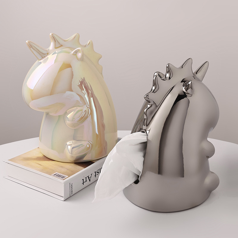 贝汉美ins风独角兽陶瓷抽纸盒家用客厅轻奢高档纸巾盒餐桌装饰品