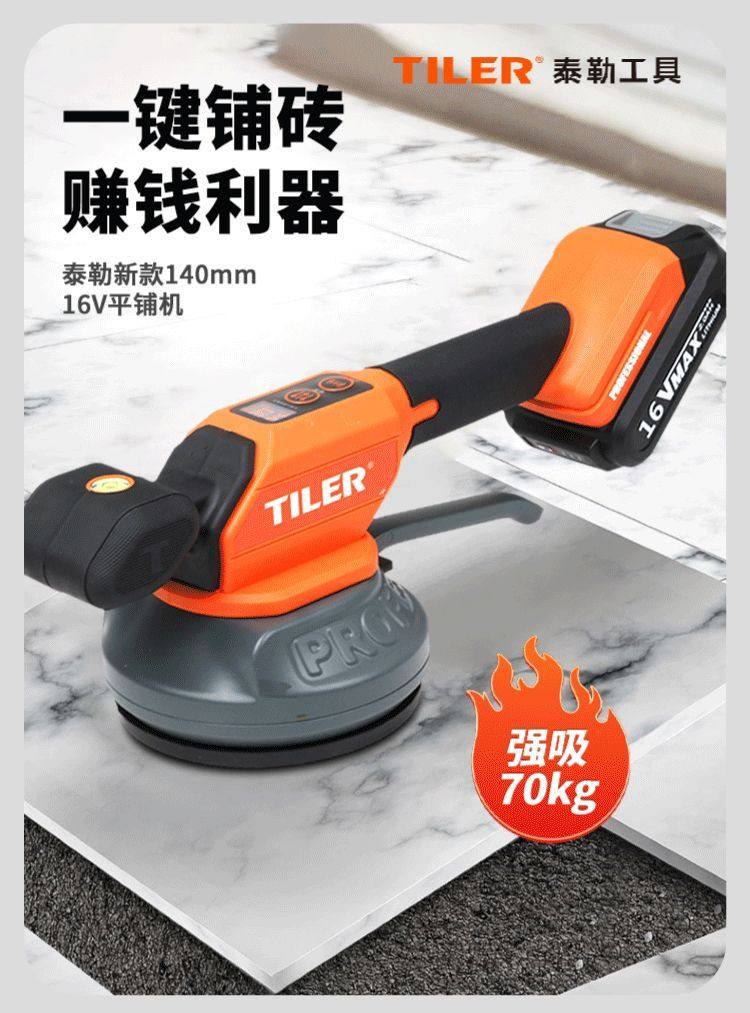 泰勒新款瓷砖平铺机强力振动吸盘铺砖墙地两用续航久9档变速71206