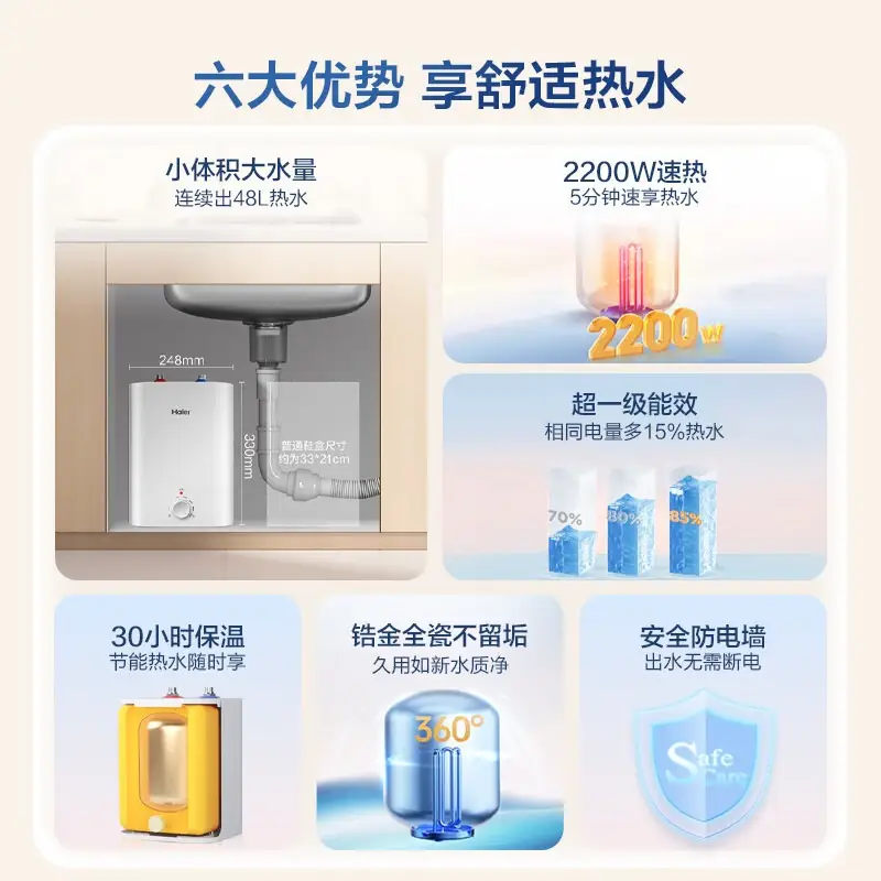 海尔EC8FA小厨宝8升热水器家用迷你小型速热台下储水式厨房热水宝