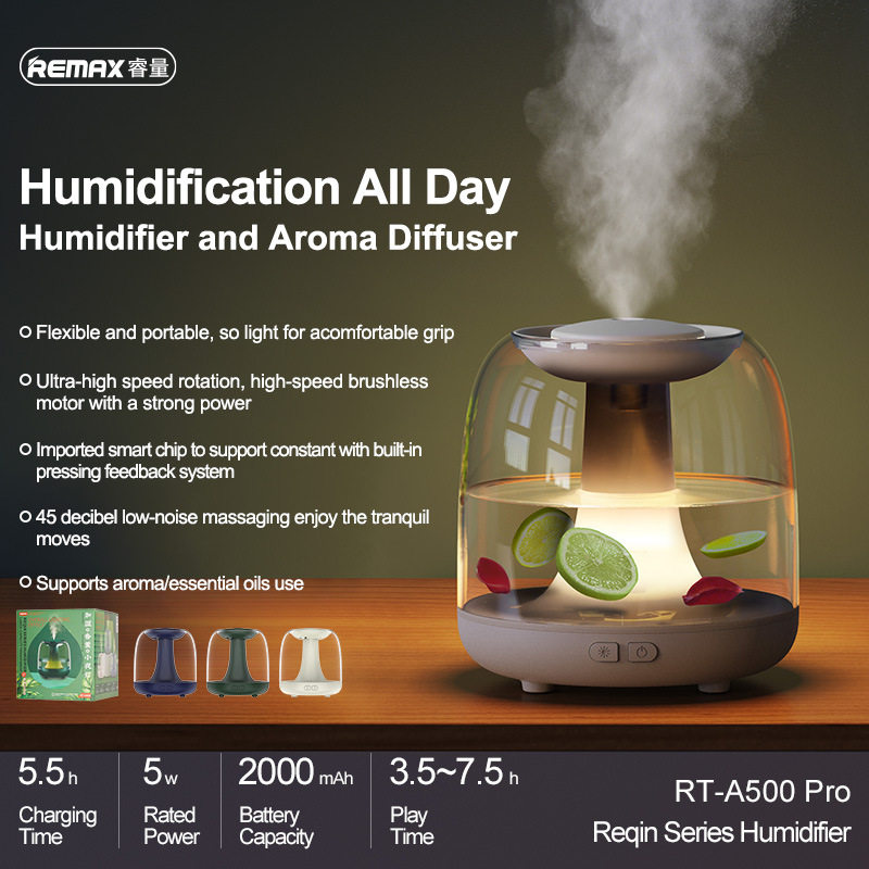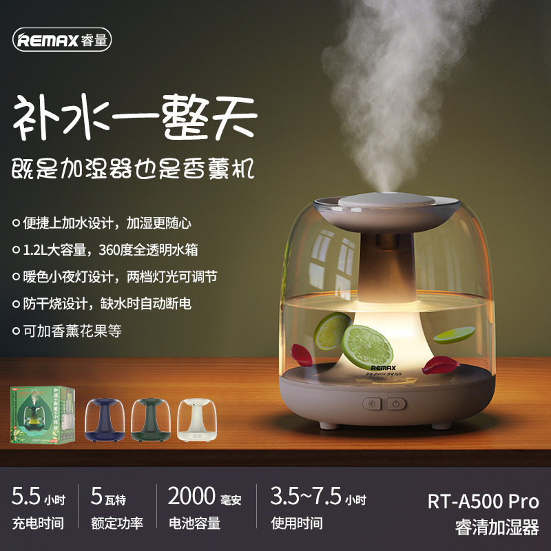 REMAX 睿清香薰加湿器RT-A500 pro雾化器1.2L车载香氛机USB小夜灯