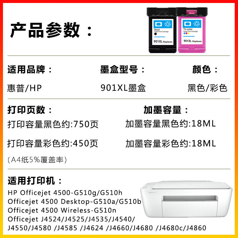 适用惠普901XL可加墨墨盒HP J4524 J4525 J4535 J4540喷墨打印机