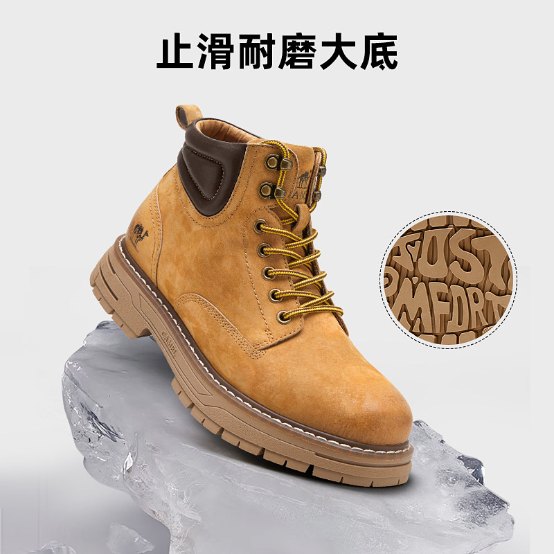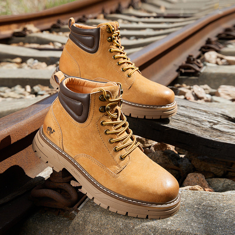 骆驼男鞋秋季新款复古休闲时装靴 厚底户外工装男士大黄靴
