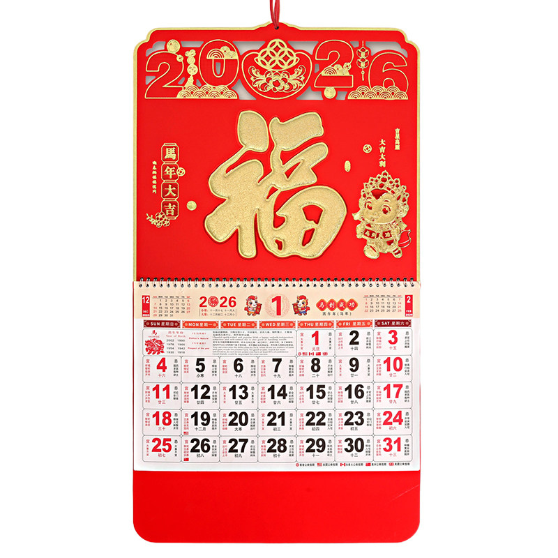 马年挂历2026年金箔福字吊牌月历日历定制马来西亚菲律宾广告年历