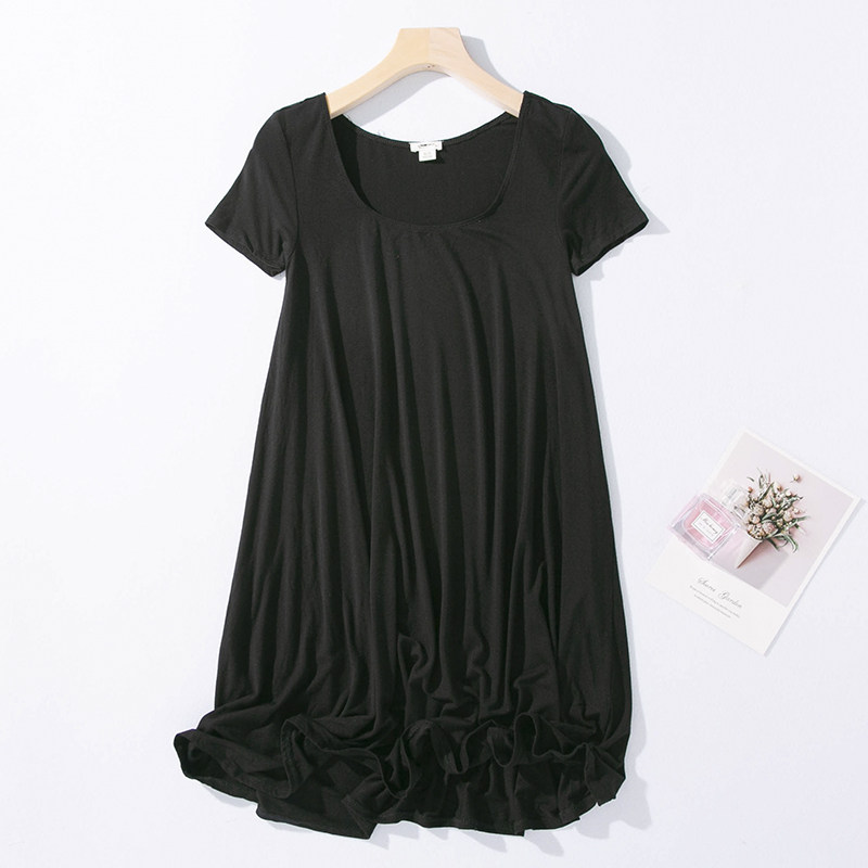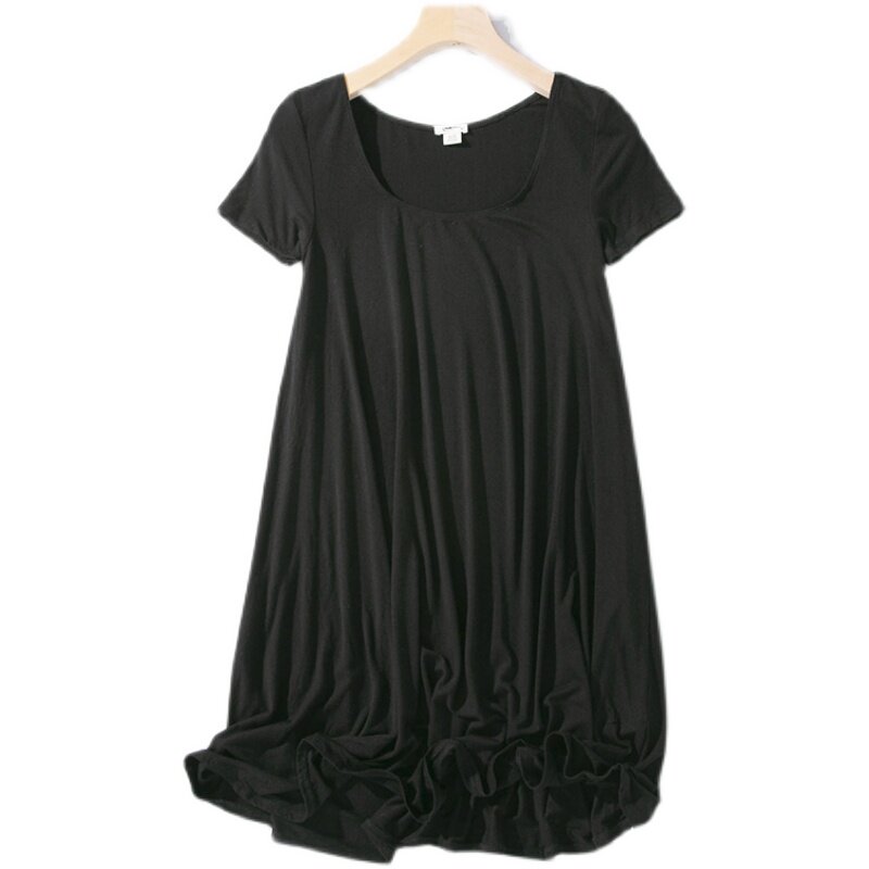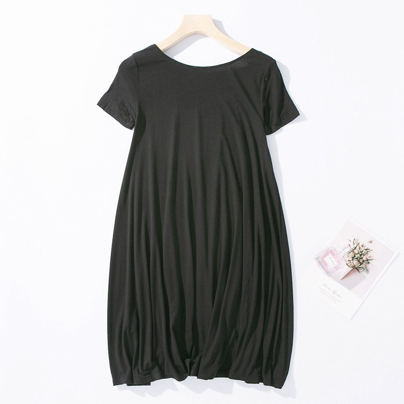 H49-4夏季新品女黑色针织弹力打底裙 基础款短袖垂感显瘦短连衣裙