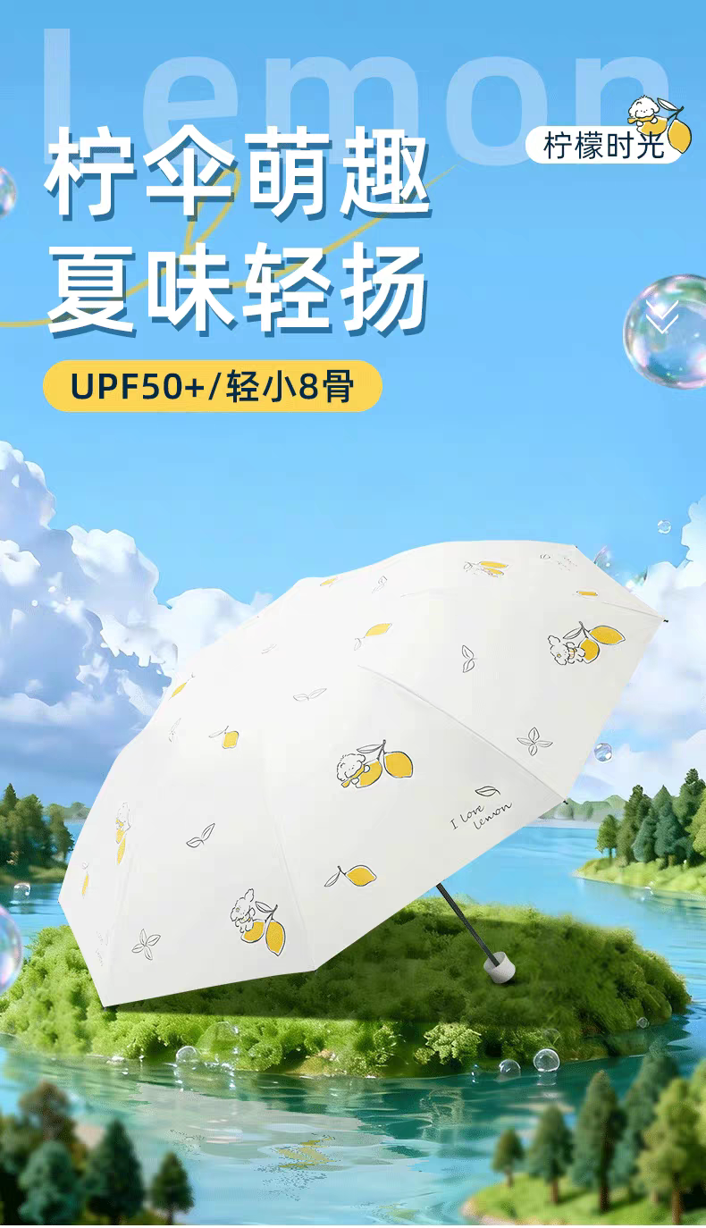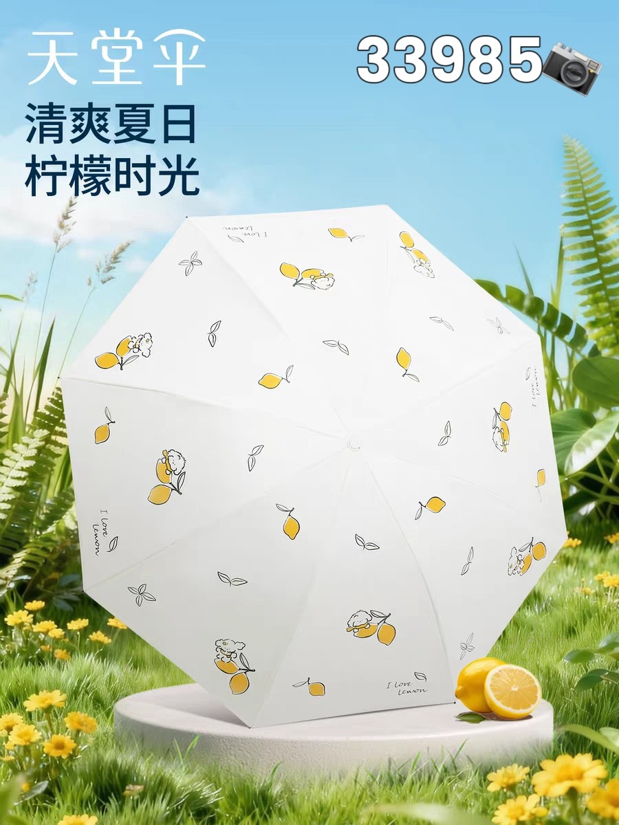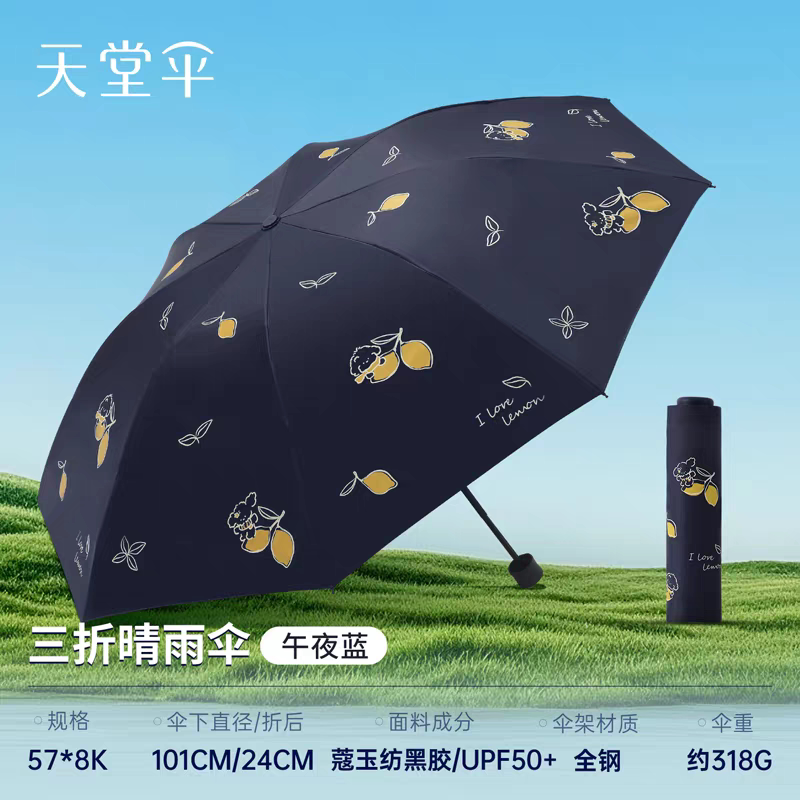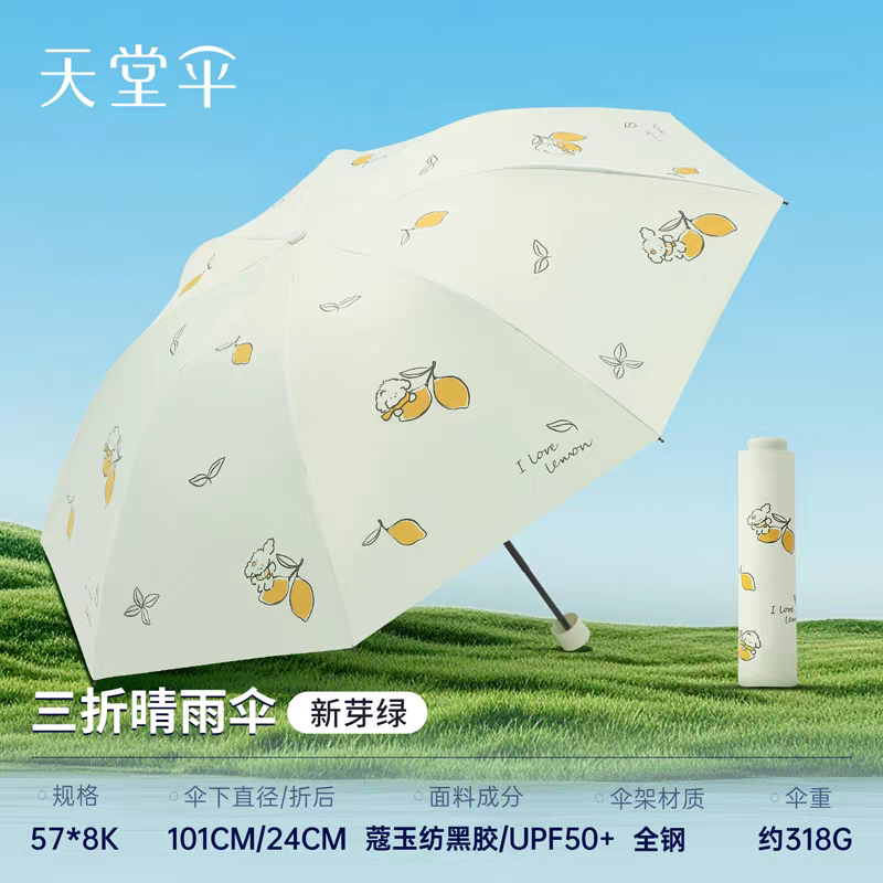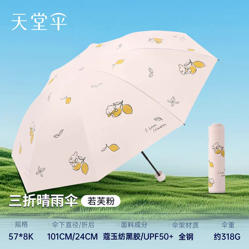 天堂伞黑胶防晒防紫外线太阳伞晴雨两用柠檬小清新小巧便携遮阳伞