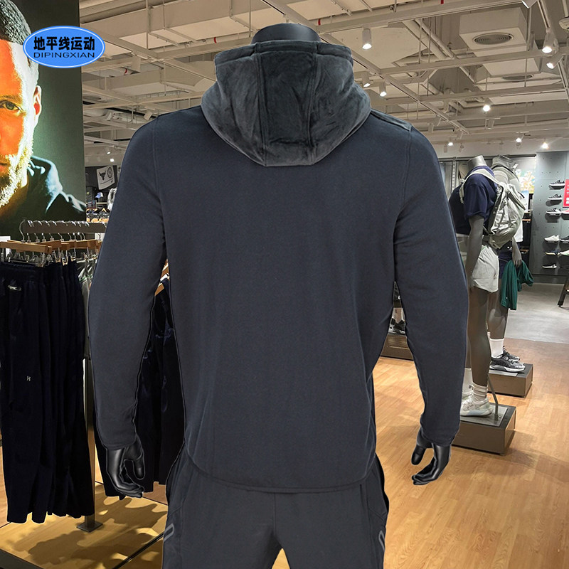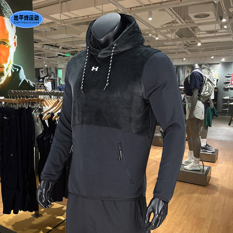 安德玛男装卫衣秋季新款时尚拼接抓绒宽松休闲运动套头衫1373874